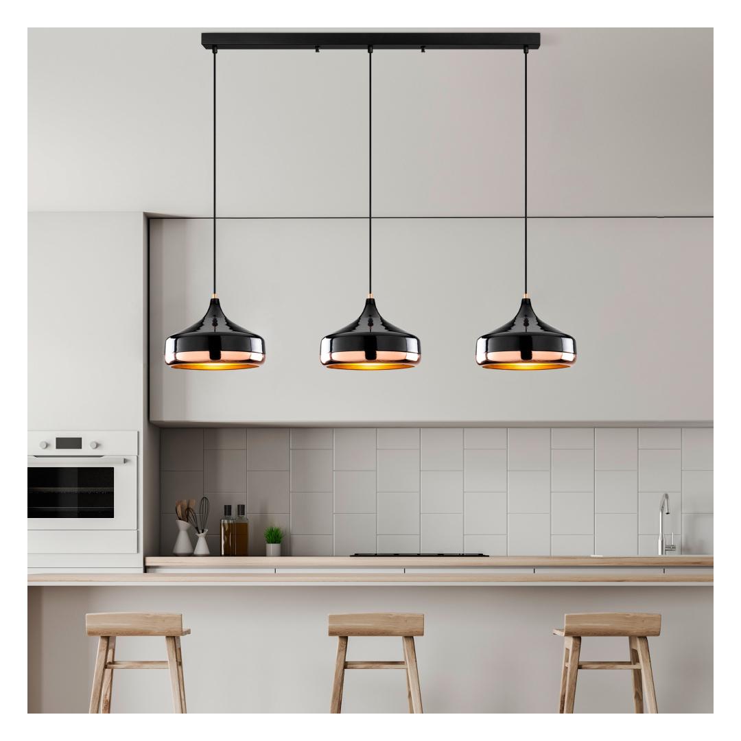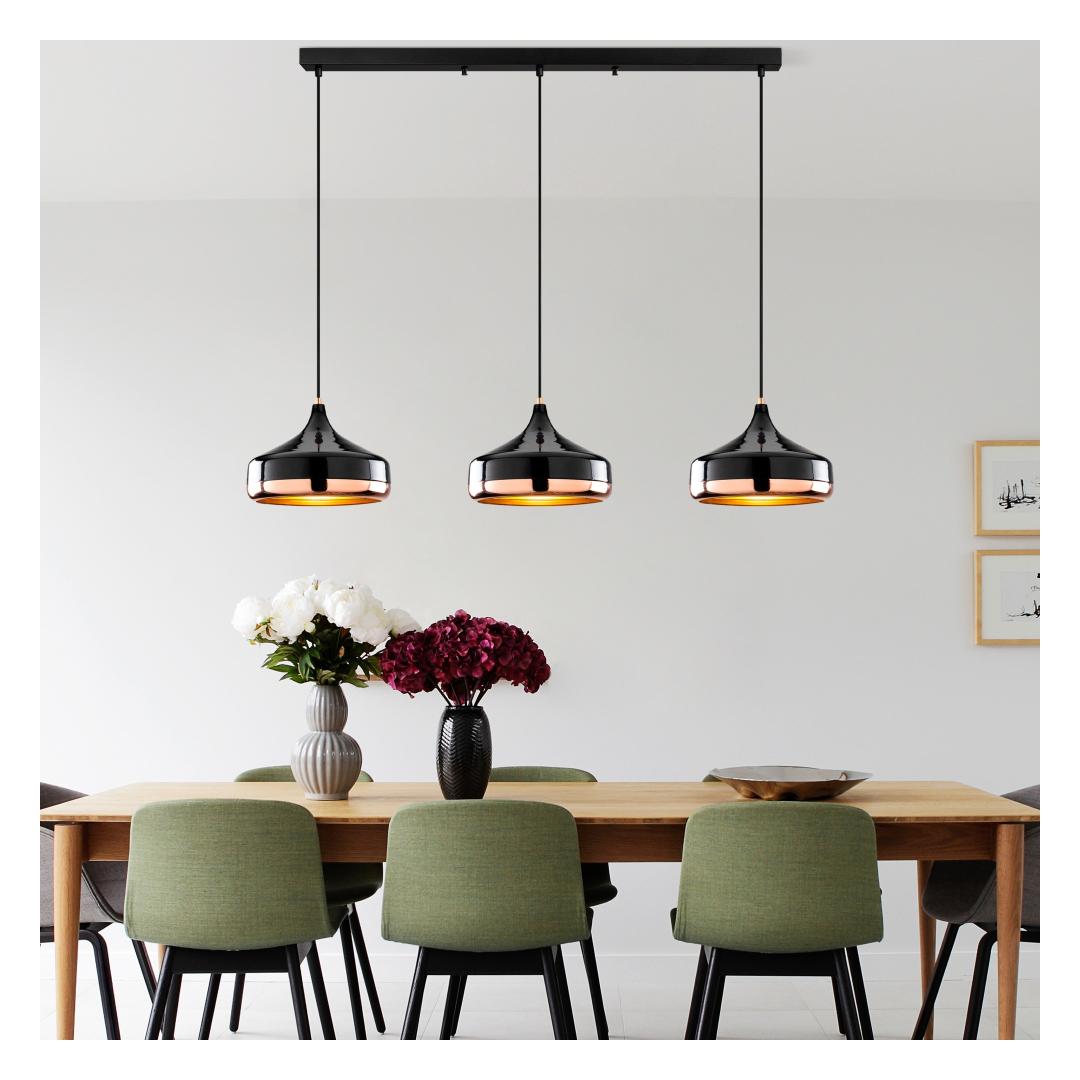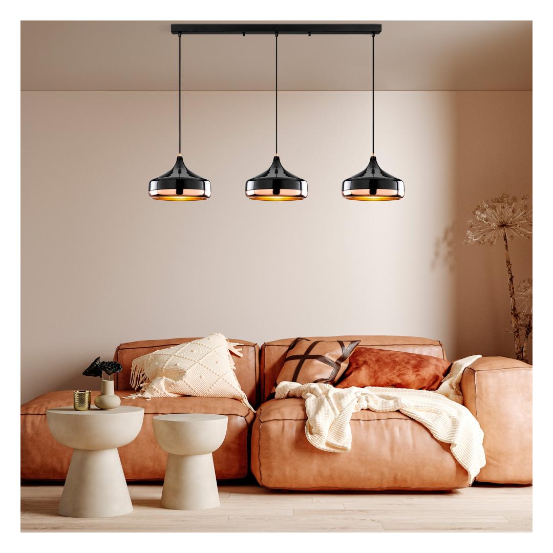 Selle lühtri sile must viimistlus täiendab vaevata mis tahes sisustust, olgu see siis moodne, traditsiooniline või eklektiline. Selle reguleeritav kõrgus võimaldab teil kohandada välimust, et see sobiks ideaalselt teie ruumiga, muutes selle mitmekülgseks ja ajatuks täienduseks teie kodule.