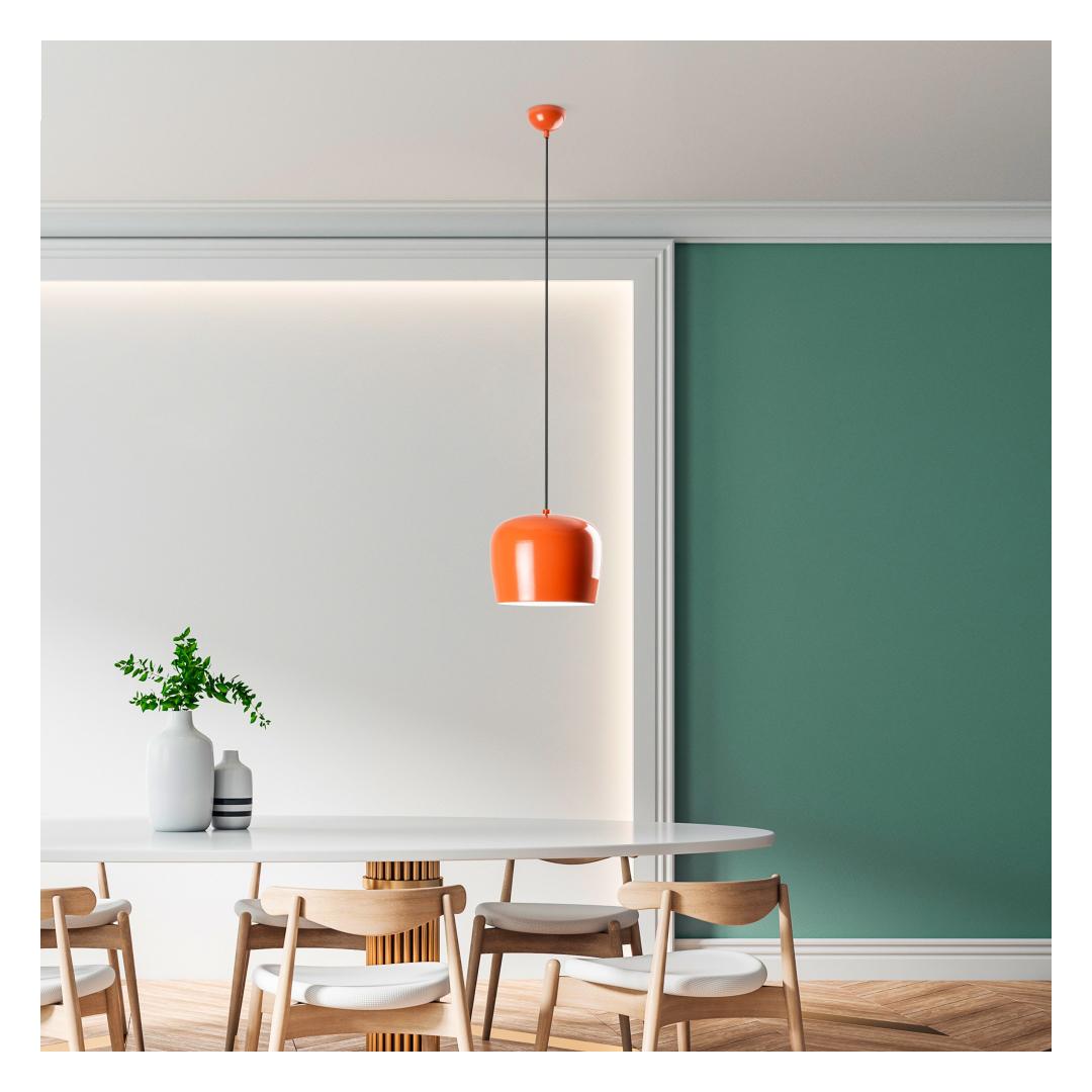 Selle lühtri elavat oranži värvi helendab koheselt teie ruumi ja muutub iga ruumi keskpunktiks. Selle õhuke metallkorpus lisab moodsat puudutust, muutes selle ideaalseks täienduseks igale kaasaegsele või traditsioonilisele sisustusele.