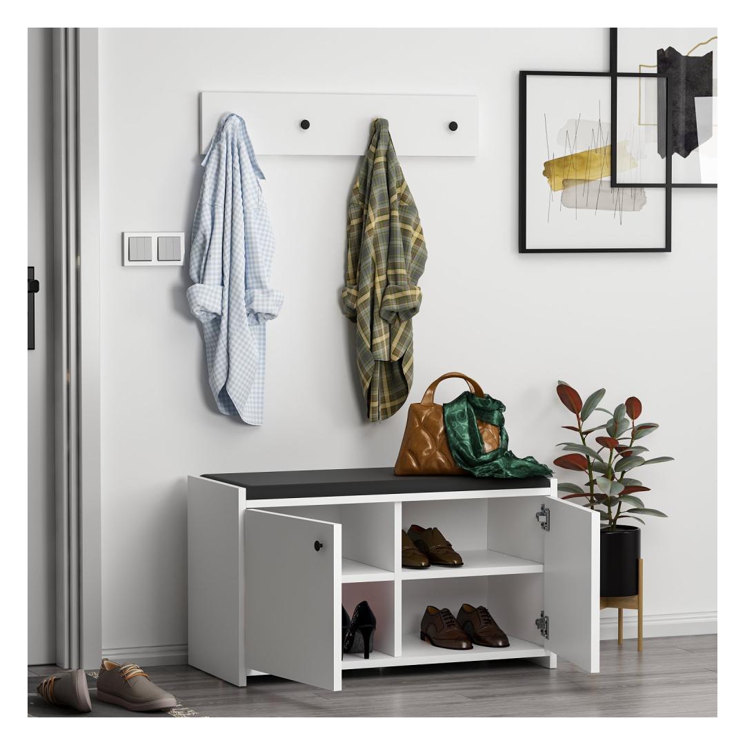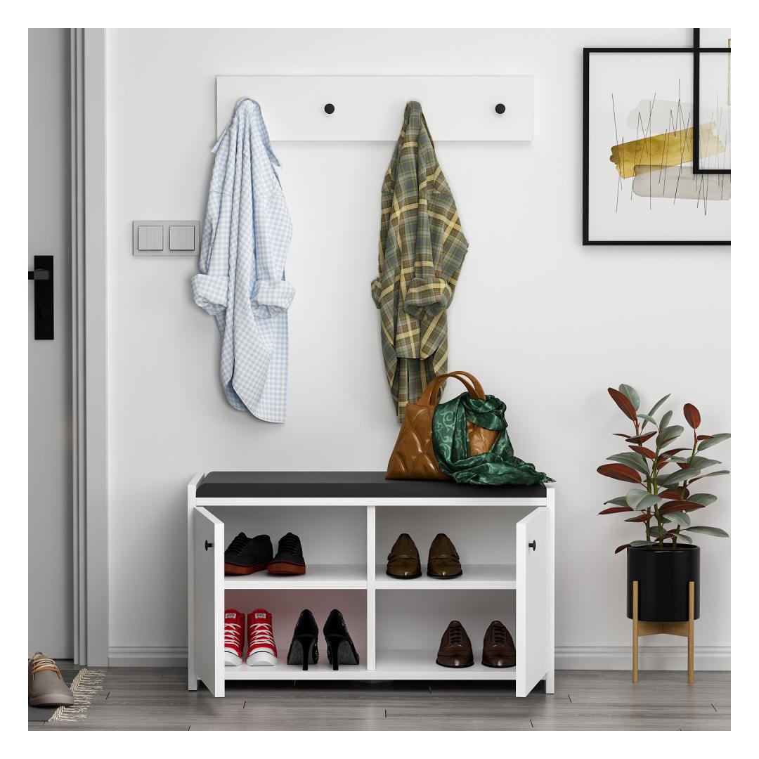 Transformeeri oma esikusse stiilne ja funktsionaalne skandinaavia kingakappKas olete väsinud kingade üle komistamisest kohe, kui astute oma koju? jätke hüvasti segadusele ja tere korraldusele meie skandinaavia kingakapiga. See stiilne ja moodne mööbliese ei ole mitte ainult praktiline hoiulahendus, vaid ka vapustav täiendus igale esikusse.Kogenud kvaliteetset käsitöödSee 100% melamiiniga kaetud puitlaastplaadist valmistatud kingakapp on valmistatud kestma. Paksus 18 mm tagab vastupidavuse ja tugevuse, samas kui elektrostaatiline ahjukuivatud värvimine lisab elegantsi. PVC-kantliistus pakub täiendavat kaitset kulumise vastu. Rikkalik hoiuruumKahe mahuka sahtli, arvukate riiulite ja riputajaga pakub see kingakapp piisavalt ruumi kõigile teie jalanõudele. Enam ei pea otsima sobivaid jalatsipaare ega kaevama läbi jalatsihunnikute. Kõigil on oma kindel koht, mis muudab teie hommikud stressivabaks. Versatiivne ja ruumi säästev disainKapi kompaktsete mõõtmete (80 cm laius, 45 cm kõrgus, 35 cm sügavus) tõttu sobib see ideaalselt väikestesse esikutesse või kitsastesse koridoridesse. Lisaks saab seda hõlpsasti seinale kinnitada, mis säästab veelgi rohkem ruumi. Tõstke oma kodu sisekujundustSelle kingakapi skandinaavialik disain õhkab lihtsust ja elegantsi. Puhtad jooned, valge värv ja minimalistlik esteetika sobituvad vaevata mis tahes interjööri stiiliga, lisades teie koju rafineeritust. Tehnilised üksikasjad:Materjal: Materjal: Materjal: Materjal: Materjal: Materjal: Materjal: Materjal: materjal: 100% melamiiniga kaetud puitlaastplaatPaksus: 18mmElektrostaatiline ahjukuivatud värviminePVC serva liistusKapi mõõtmed: Laius: 80cm, kõrgus: 45cm, sügavus: 35cmRiputusvahendi mõõtmed: Laius: 72cm, kõrgus: 15cmVärv: valgeSaab kinnitada seinale Värv: White
