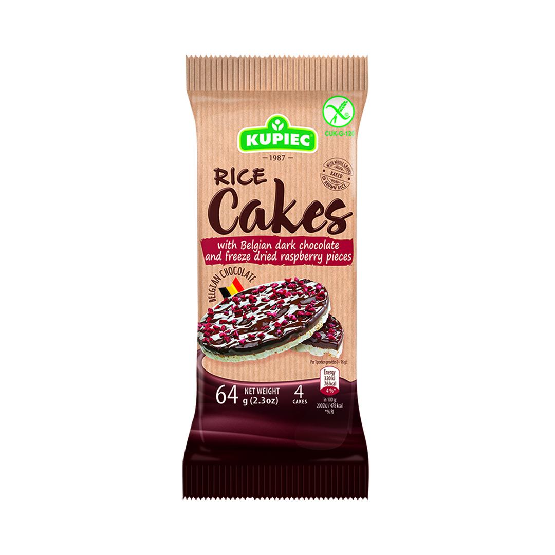 KUPIEC Rice wafers with dark chocolate and raspberry pieces 64g
