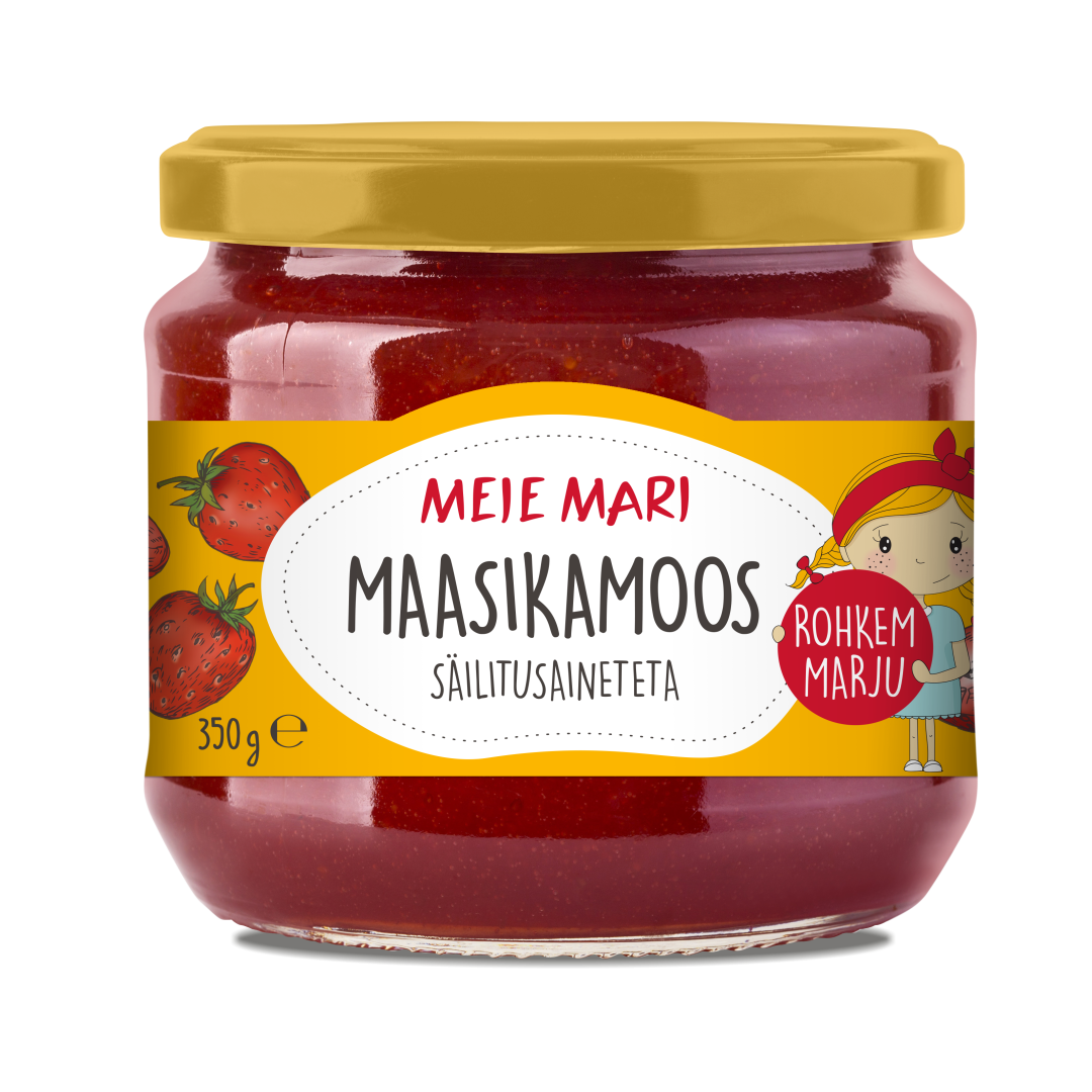 Jam made from ripe and juicy strawberries is a wonderful addition to ice cream, pancakes and fresh bread. Strawberries contain many useful trace elements and vitamins (A, B, C, E, K). Our Mari jams are preservative-free. So delicious and now even more berry! Ingredients: strawberries, sugar, water, gelling agent (pectin), acidity regulator (citric acid). Made from 65 g of strawberries per 100 g of product. Total sugar content 44 g per 100 g.