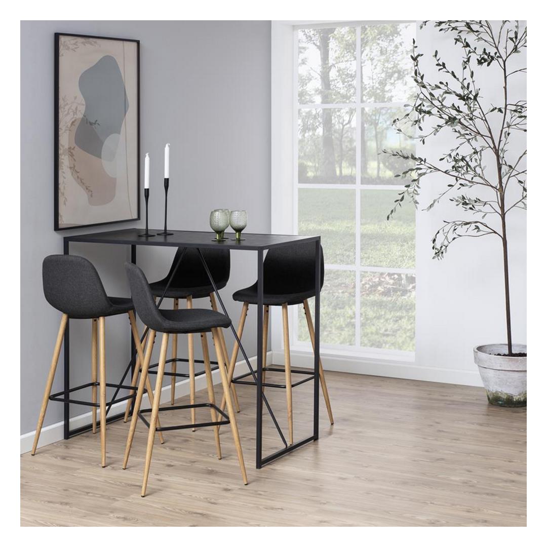 Bar table SEAFORD 120x60xH105cm, tabletop: black island melamine, frame: black metal. Baarilaud SEAFORD 120x60xH105cm, lauaplaat: must saare melamiin, raam: must metall.