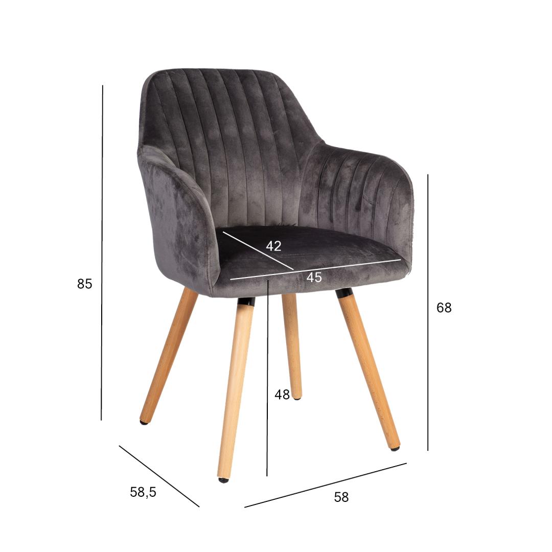 Chair ARIEL 58x58.5xH85cm, cover material: fabric, color: gray, beech wood legs. Additional information: weight limit 100 kg. Tool ARIEL 58x58,5xH85cm, kattematerjal: kangas, värvus: hall, pöögipuidust jalad. Lisainfo: kaalupiirang 100kg.