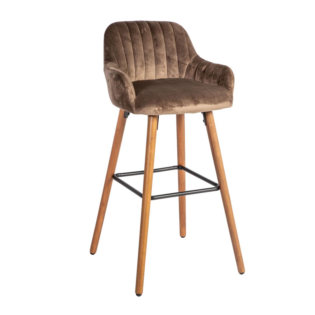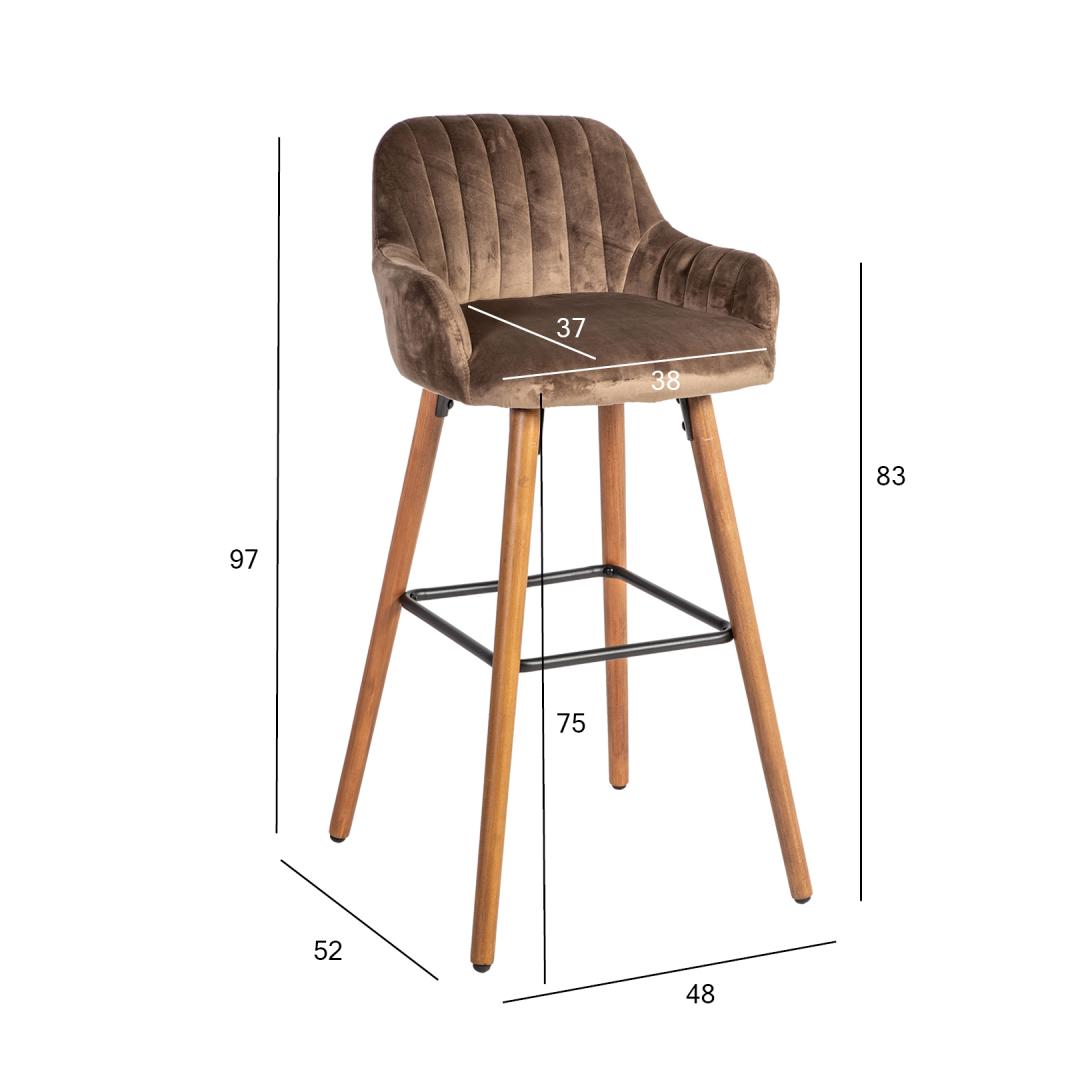 Bar stool ARIEL 48x52xH97cm, brown. The upholstered seat of the chair is covered with velvet fabric. The legs of the chair are made of beech wood. Weight limit 100 kg. Baaritool ARIEL 48x52xH97cm, pruun. Tooli polsterdatud iste on kaetud sametkangaga. Tooli jalad on valmistatud pöögipuidust. Kaalupiirang 100kg.