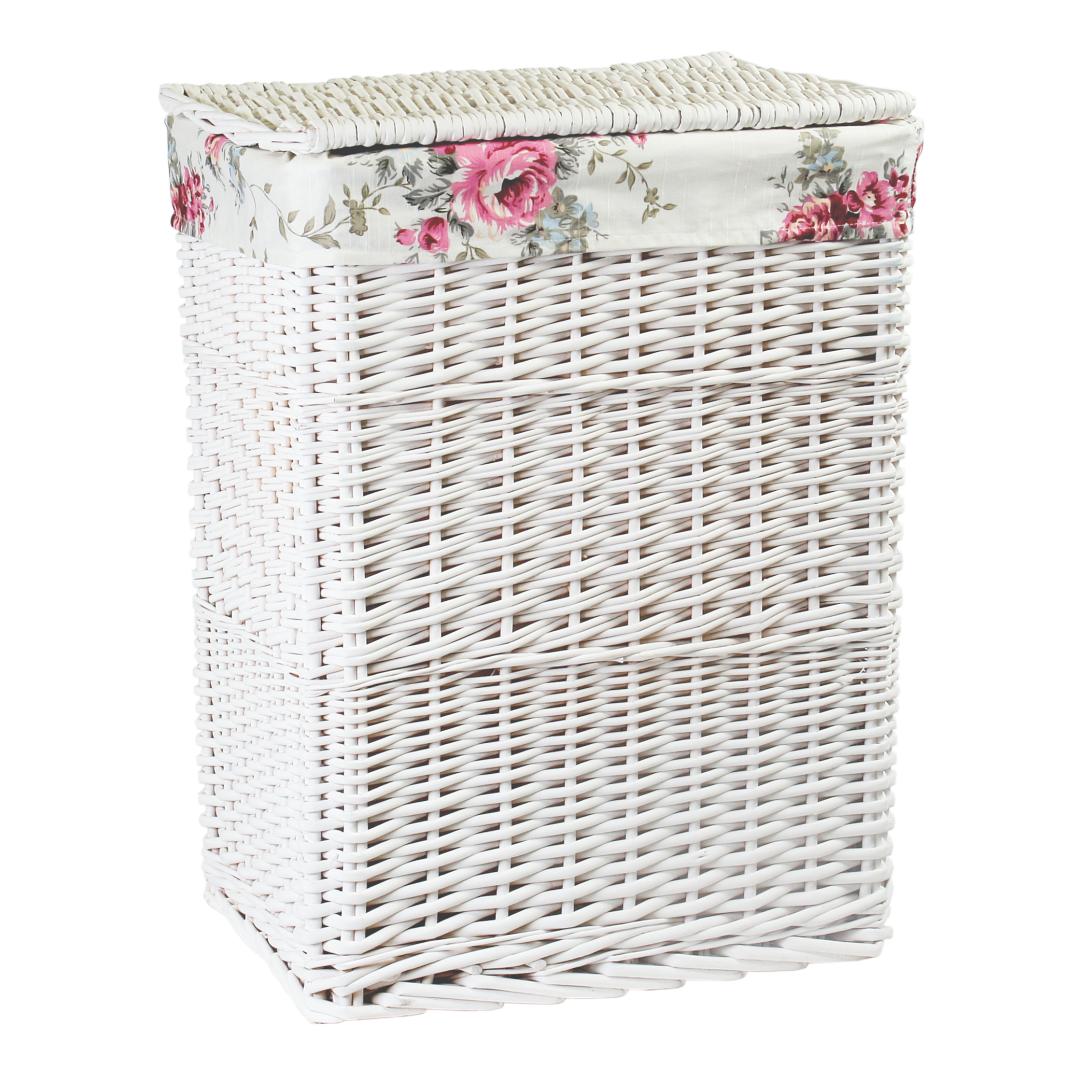 Laundry basket MAX-1, 45x33xH59cm, white braid, floral fabric