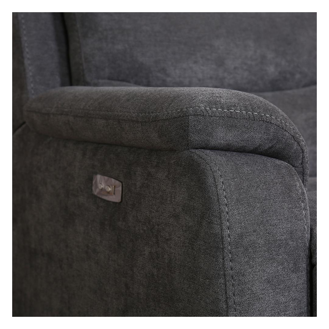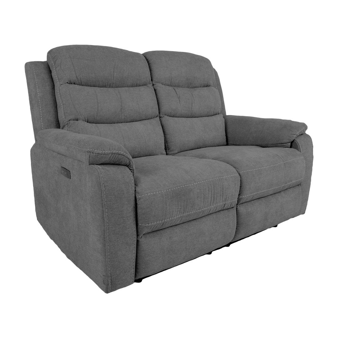 Recliner sofa MIMI with electric mechanism, 2-seater 153x93xH102cm, grey. The position of the back- and footrest of both seats can be changed by an electric mechanism. When the footrest is raised, the backrest moves smoothly into the reclining position. Cover material: 100% polyester fabric, Martindale 30 000. Frame: wood, plywood and metal. Upholstery: polyurethane foam. Diivan MIMI 2-kohaline elektriline recliner 153x93xH102cm, hall. Recliner tüüpi diivani mõlema istme selja- ja jalatoe asendit on võimalik muuta elektrilise mehhanismi abil. Jalatuge üles tõstes liigub seljatugi sujuvalt kaasa lamavasse asendisse. Kattematerjal: 100% polüesterkangas, Martindale 30 000. Karkass: puit, vineer ja metall. Polsterdus: polüuretaanvaht.