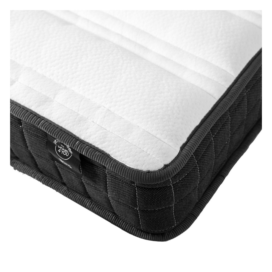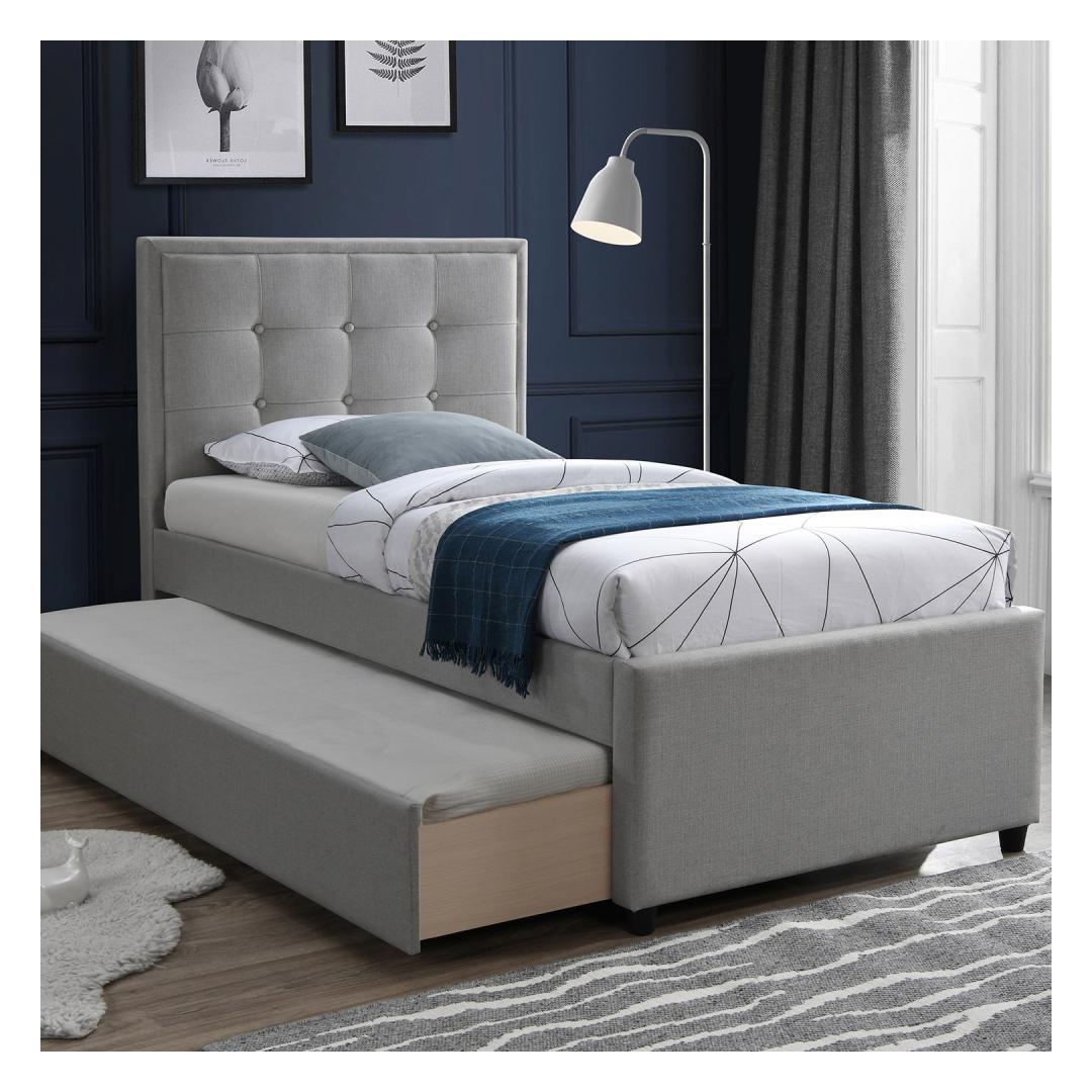 Bed OSWALDO 90x200cm, with mattress HARMONY UNO, platinum grey. PERFECT SLEEP BY HOME4YOU. The drawer under the bed can be pulled out on both sides and used as an additional sleeping space or for storage. The bed frame is made of MDF board and covered with polyester fabric. The set includes bed legs, headboard and bed base slats and one mattress. The affordable firmer spring mattress has packed deluxe pocket springs (2,1mm/2,2mm at the edges). The stretch fabric cover is made of soft and skin-friendly viscose-polyester (fabric weight 240g/m2). The mattress is softened with high-quality 3cm foam layer, which provides good muscle and skeletal relaxation. The fabric and felt comply with the international Oeko-Tex 100 standard. The mattress is packed in a roll to make it easier to transport. The mattress needs up to 2 hours to restore its original shape. Carefully remove the plastic bags and place the mattress on the bed. The dimensions of the mattress are 90x200xH20cm. The height of the additional mattress can be up to 20cm. The dimensions of the product are 98x215,5xH117,5cm. Voodi OSWALDO 90x200cm, madratsiga HARMONY UNO, plaatinahall. Voodi all on mõlemale poole väljatõmmatav sahtel, mida võib kasutada lisamagamiskoha või panipaigana. Voodi korpus on valmistatud MDF plaadist ja kaetud polüesterkangaga. Komplekt sisaldab voodijalgu, peatsit, põhjalippe ja ühte madratsit. Pakitud vedruplokiga madrats on keskmisest jäigema vedrustusega (pocket vedrustus 2,1mm/äärtes 2,2mm). Hele stretch-kangast madratsikate on nahasõbralikust ja pehmest viskoos-polüestrist (kangakaal 240g/m²). Madrats on pehmendatud kvaliteetse ja vastupidava 3cm poroloonikihiga, mis lisab magamismugavust ja pakub kehale piisavat lõõgastust. Kangas, vilt ja vatiin vastavad rahvusvahelisele Oeko-Tex 100 standardile. Madrats on pakitud rulli, et seda oleks lihtsam transportida. Madrats vajab oma esialgse kuju taastamiseks kuni 2 tundi aega. Eemaldage ettevaatlikult kilepakend ja asetage madrats voodile. Madratsi mõõdud on 90x200xH20cm. Voodi üldmõõdud on 98x215,5xH117,5cm.