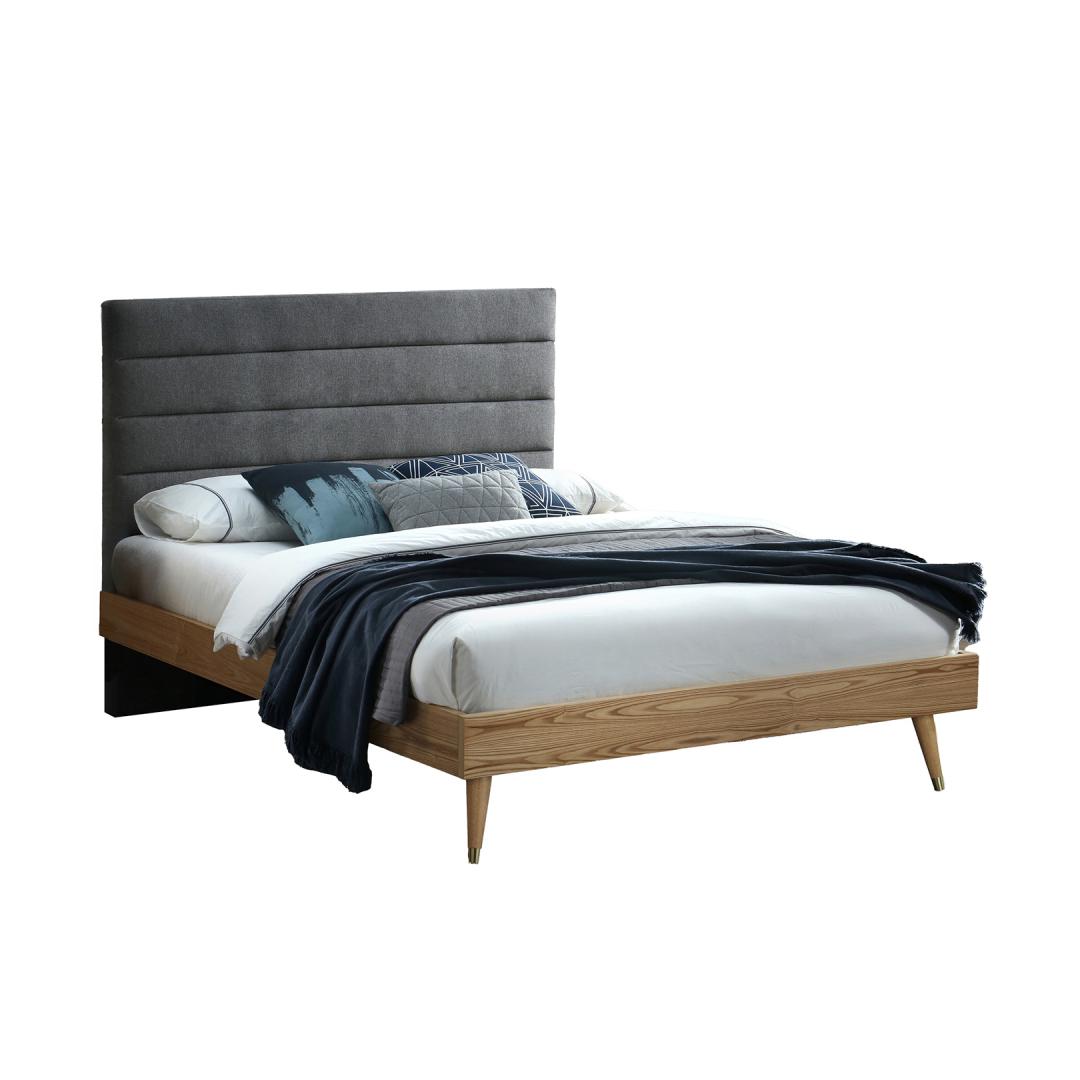 Bed ROMAN 160x200cm, grey fabric/light oak. The base frame and legs of the bed are made of oak wood and finished with light lacquer. The head with soft padding is covered with gray polyester fabric. The set includes bed bottom slats. The mattress is not included. The dimensions of the suitable mattress are 160x200cm. The overall dimensions of the bed are 166,5x211xH110,5cm. Voodi ROMAN 160x200cm, hall kangas/hele tamm. Voodi alusraam ja jalad on valmistatud tammepuust ja viimistletud heleda lakiga. Pehme polsterdusega peats on kaetud halli polüesterkangaga. Komplekt sisaldab voodi põhjalippe. Madrats ei kuulu komplekti. Sobiva madratsi mõõdud on 160x200cm. Voodi üldmõõdud on 166,5x211xH100,5cm.