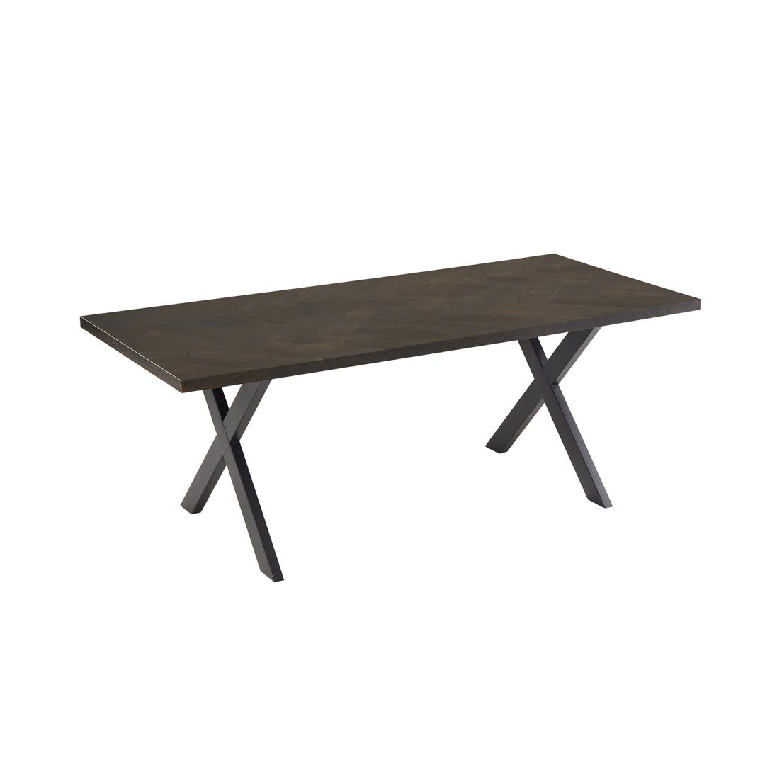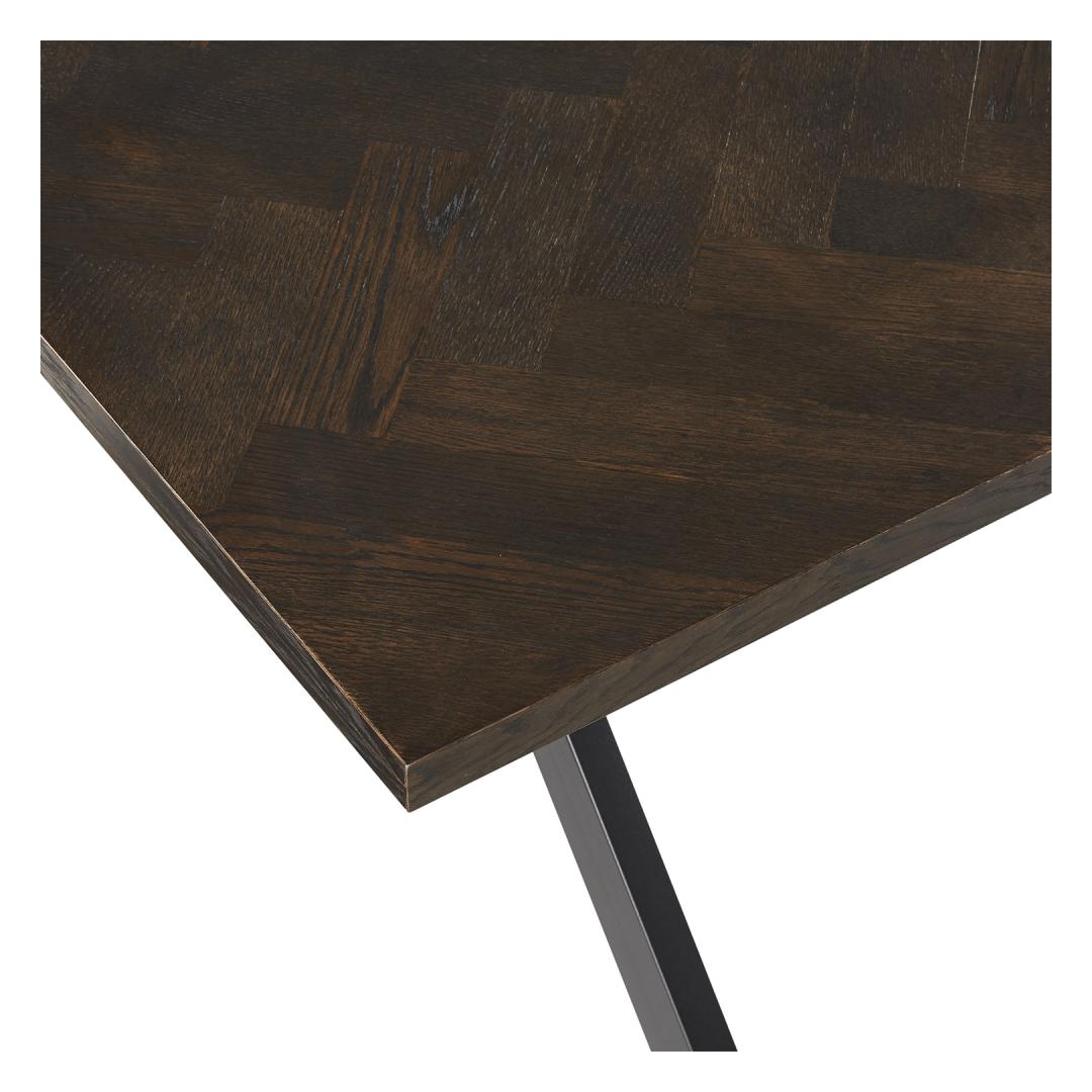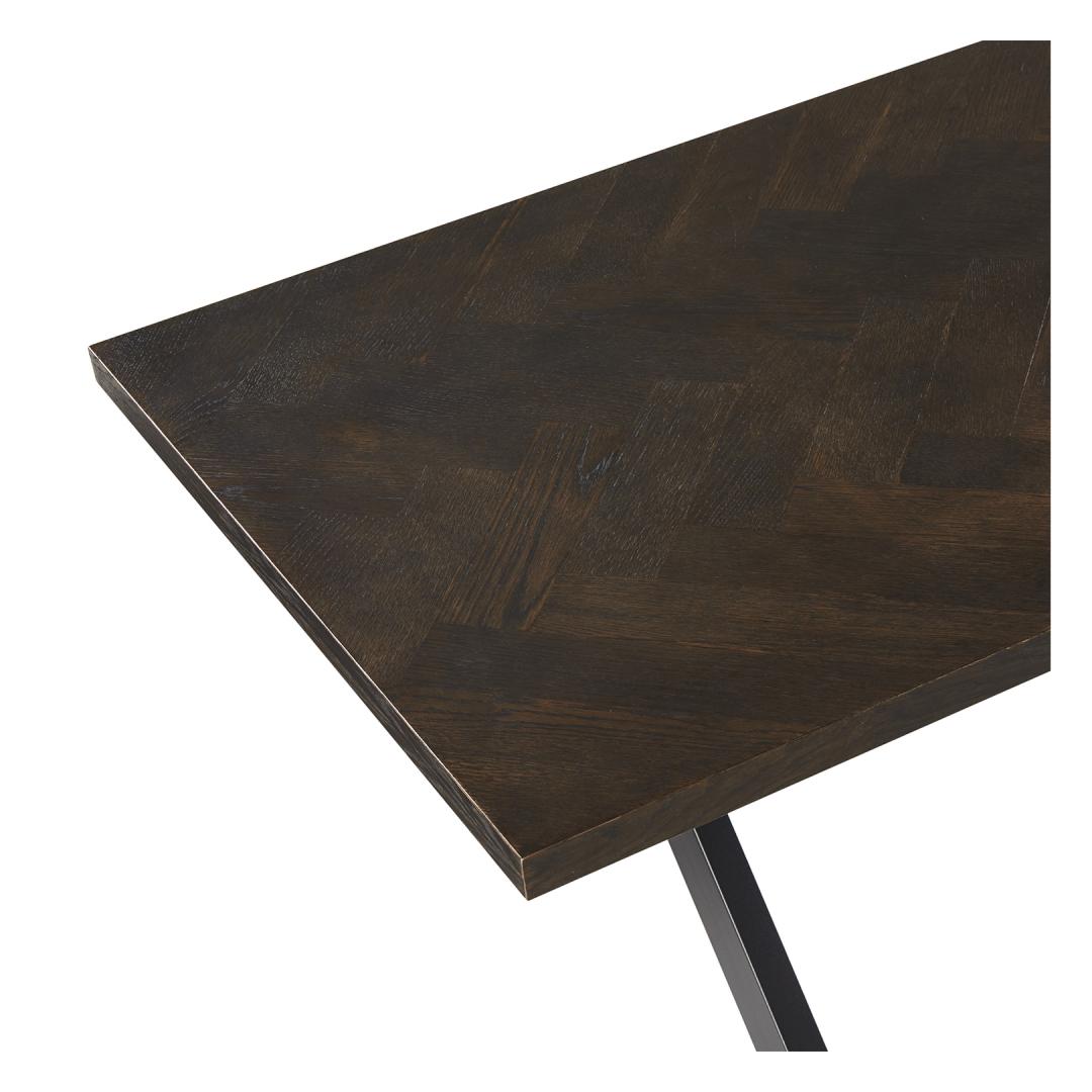 Söögilaud ROWAN 200x90xH75cm, kalasaba suitsutamm. Lauaplaat: kalasaba mustrisse laotud naturaalse tammespooniga mööbliplaat. Lauaplaat on viimistletud tumeda lakiga. Laua ristjalad on valmistatud metallist ja viimistletud musta pulbervärviga. Söögilaud ROWAN 200x90xH75cm, kalasaba suitsutamm. Lauaplaat: kalasaba mustrisse laotud naturaalse tammespooniga mööbliplaat. Lauaplaat on viimistletud tumeda lakiga. Laua ristjalad on valmistatud metallist ja viimistletud musta pulbervärviga.