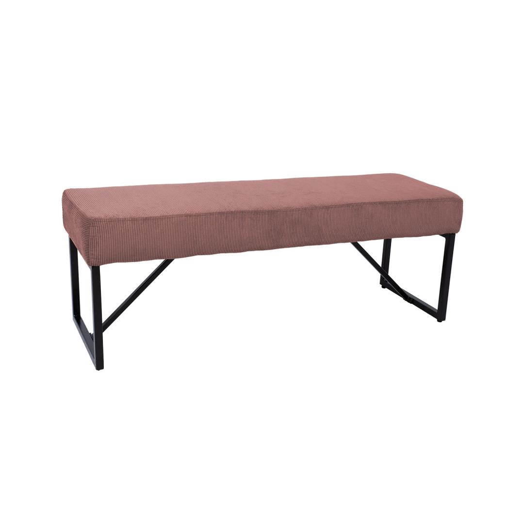 Bench MYLA 110x36x42cm, vintage pink corduroy. The bench seat is padded and covered with polyester fabric. The legs and base frame of the bench are made of metal and finished with a black powder coating. Pink MYLA 110x36x42cm, vanaroosa velvet. Pingi iste on polsterdatud ja kaetud polüesterkanaga. Pingi jalad ja alusraam on valmsitatud metallist ja viimistletud musta pulbervärviga.