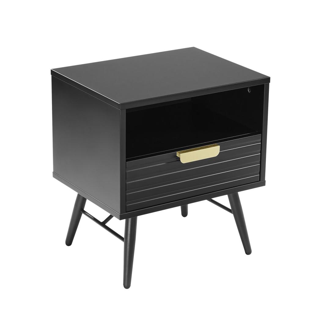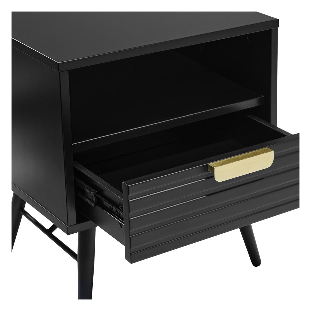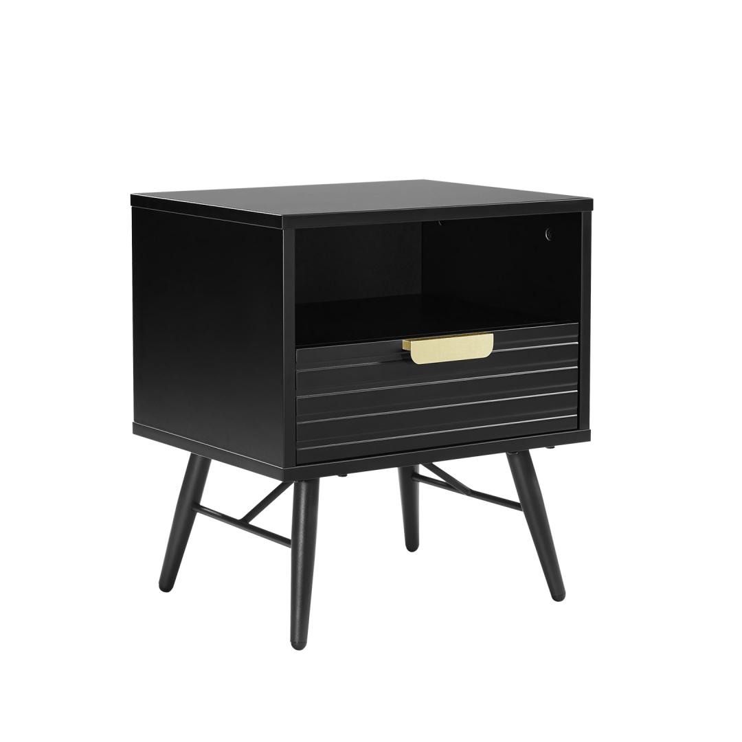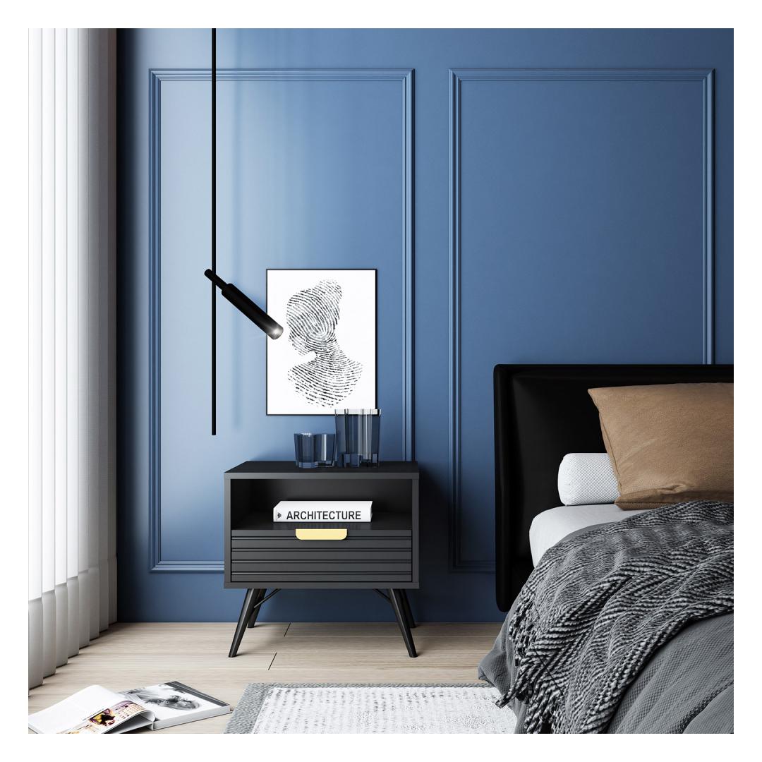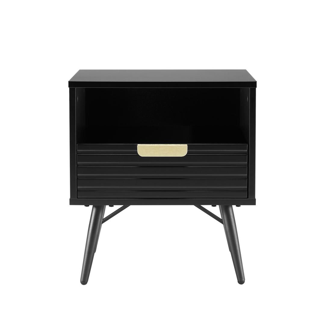 Öökapp PIXAR sahtliga 45x35xH50cm, must. Mööbliplaadist valmistatud öökapp on viimistletud musta polüuretaanvärviga. Ribipaneelist sahtli esipaneel ja kuldne käepide annavad kapile pilkupüüdva välimuse. Öökapi jalad ja alusraam on valmistatud metallist. Öökapp PIXAR sahtliga 45x35xH50cm, must. Mööbliplaadist valmistatud öökapp on viimistletud musta polüuretaanvärviga. Ribipaneelist sahtli esipaneel ja kuldne käepide annavad kapile pilkupüüdva välimuse. Öökapi jalad ja alusraam on valmistatud metallist.