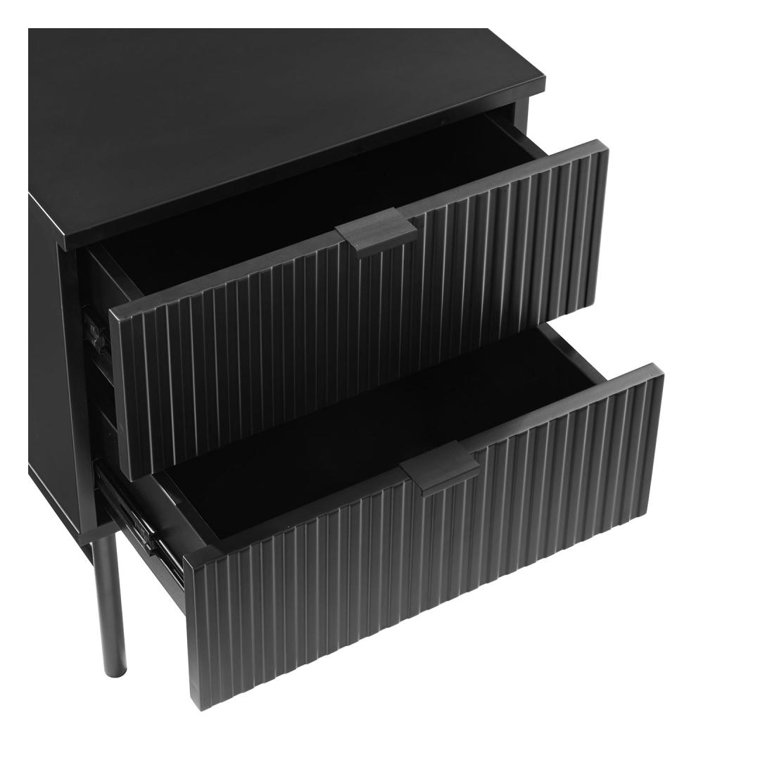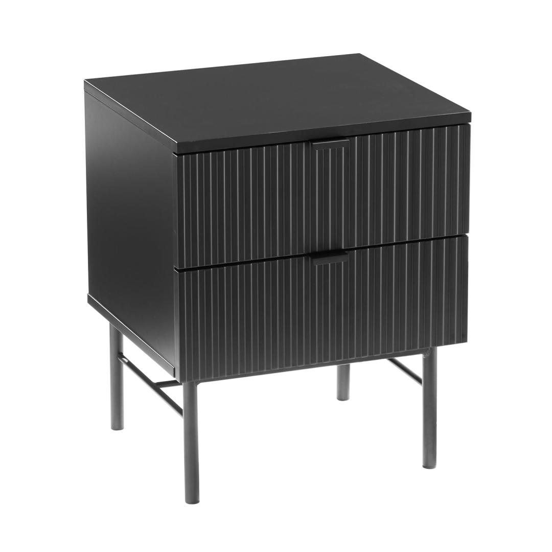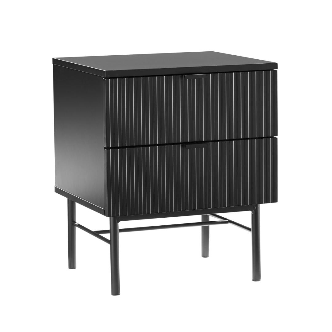 Öökapp SEQUENCE 2-sahtliga 45x40xH55cm, must. Öökapi korpus on valmistatud MDF plaadist. Reljeefse pinnaga triibulised sahtli esipaneelid annavad kapile omanäolise ja trendika välimuse. Sahtlid liiguvad metallsiinidel. Öökapp on viimistletud vastupidava polüuretaanvärviga. Metallist alusraam ja jalad on viimistletud pulbervärviga. Öökapp SEQUENCE 2-sahtliga 45x40xH55cm, must. Öökapi korpus on valmistatud MDF plaadist. Reljeefse pinnaga triibulised sahtli esipaneelid annavad kapile omanäolise ja trendika välimuse. Sahtlid liiguvad metallsiinidel. Öökapp on viimistletud vastupidava polüuretaanvärviga. Metallist alusraam ja jalad on viimistletud pulbervärviga.