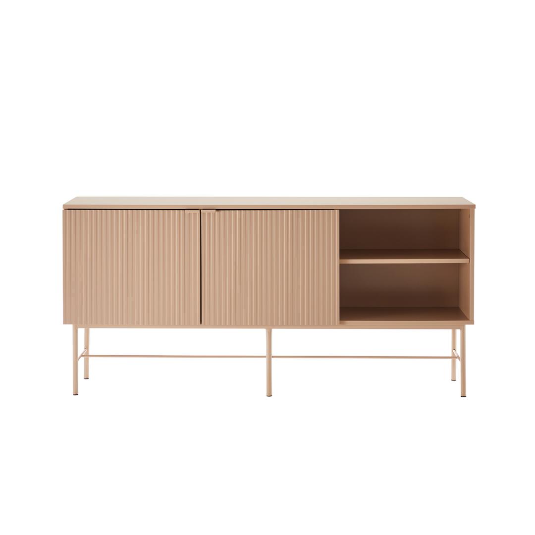Kummut SEQUENCE 2-ukse ja avatud riiuliga 158x40xH75cm, cappuccino. Kummuti korpus on valmistatud MDF plaadist. Reljeefse pinnaga triibulised uksepaneelid annavad tootele omanäolise ja trendika välimuse. Kummut on viimistletud vastupidava polüuretaanvärviga. Metallist alusraam ja jalad on viimistletud pulbervärviga. Kummut SEQUENCE 2-ukse ja avatud riiuliga 158x40xH75cm, cappuccino. Kummuti korpus on valmistatud MDF plaadist. Reljeefse pinnaga triibulised uksepaneelid annavad tootele omanäolise ja trendika välimuse. Kummut on viimistletud vastupidava polüuretaanvärviga. Metallist alusraam ja jalad on viimistletud pulbervärviga.