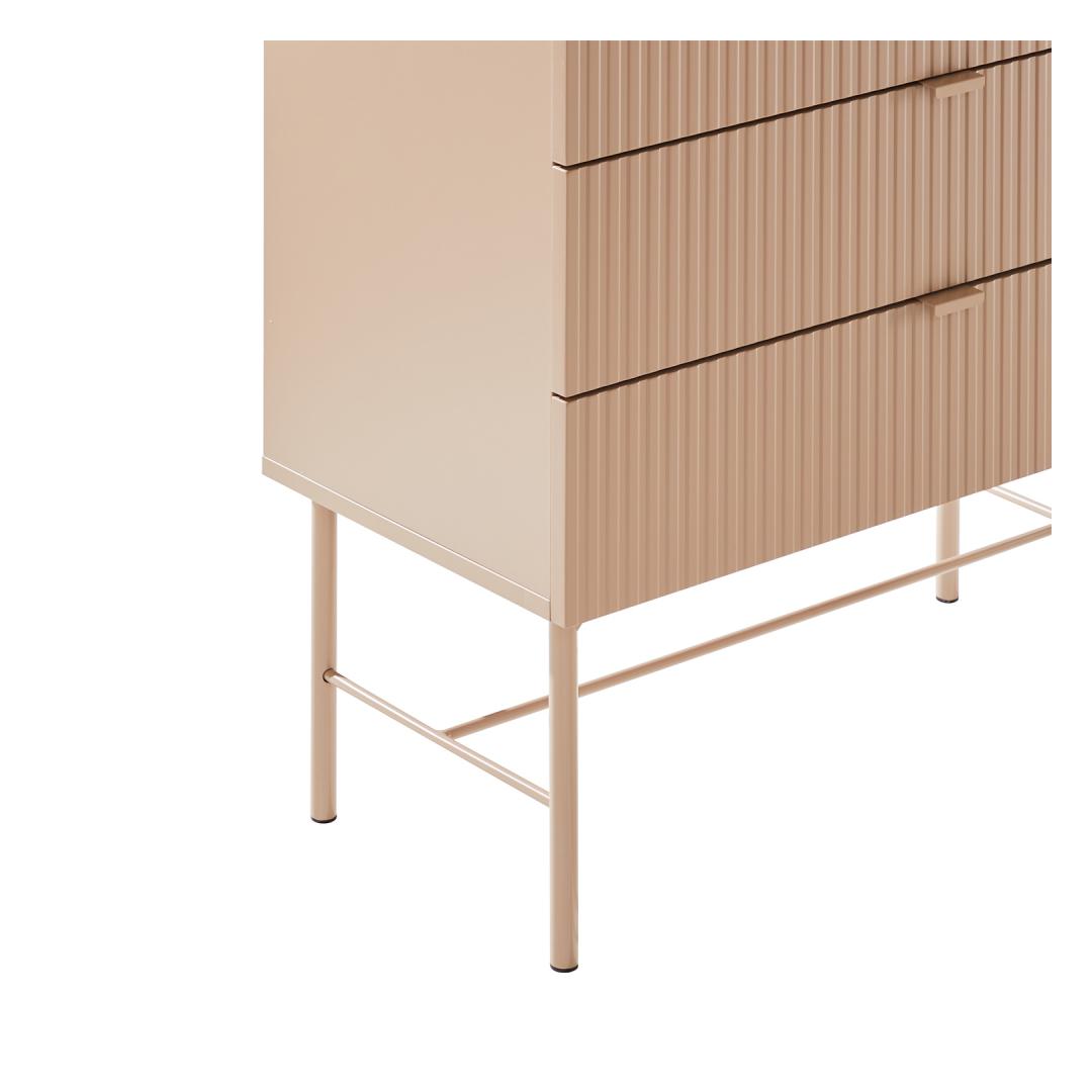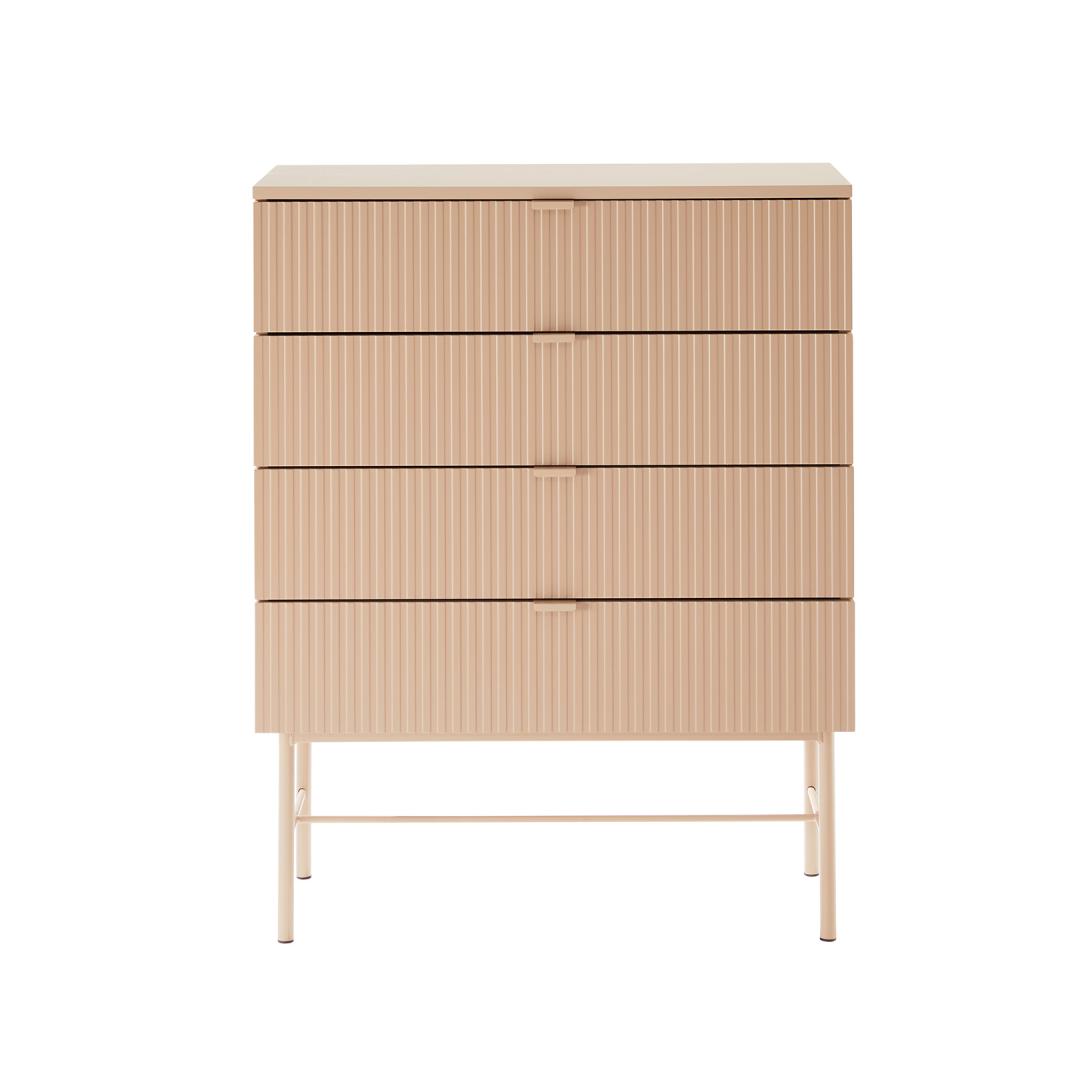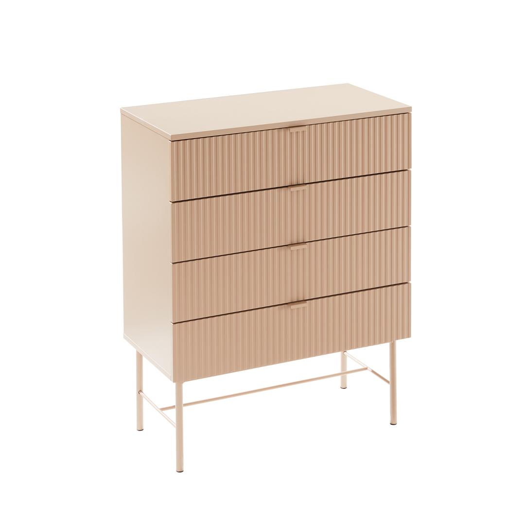 Kummut SEQUENCE 4-sahtliga 79x40xH100cm, cappuccino. Kummuti korpus on valmistatud MDF plaadist. Reljeefse pinnaga triibulised sahtlite esipaneelid annavad tootele omanäolise ja trendika välimuse. Sahtlid liiguvad metallsiinidel. Kummut on viimistletud vastupidava polüuretaanvärviga. Metallist alusraam ja jalad on viimistletud pulbervärviga. Kummut SEQUENCE 4-sahtliga 79x40xH100cm, cappuccino. Kummuti korpus on valmistatud MDF plaadist. Reljeefse pinnaga triibulised sahtlite esipaneelid annavad tootele omanäolise ja trendika välimuse. Sahtlid liiguvad metallsiinidel. Kummut on viimistletud vastupidava polüuretaanvärviga. Metallist alusraam ja jalad on viimistletud pulbervärviga.