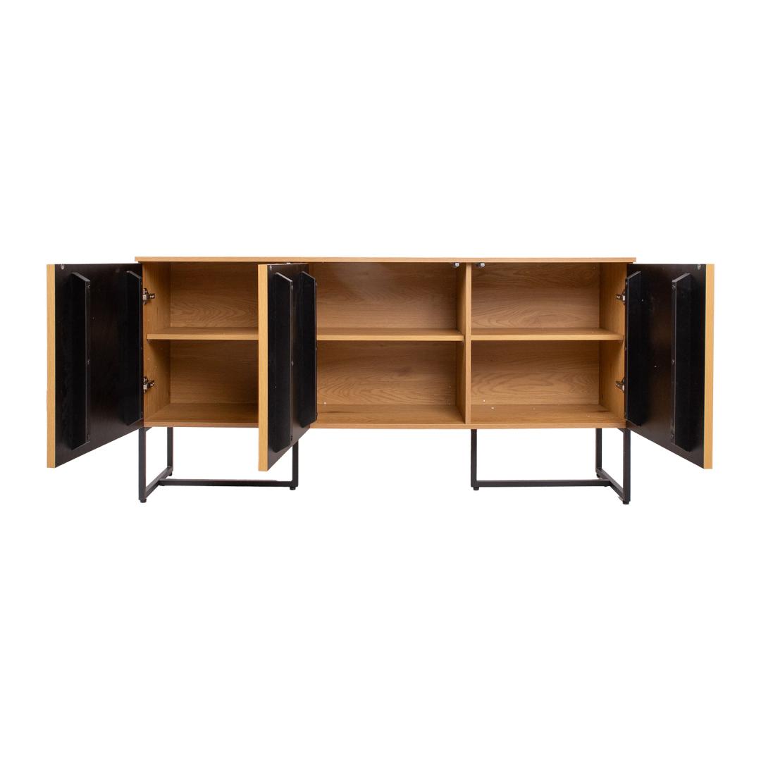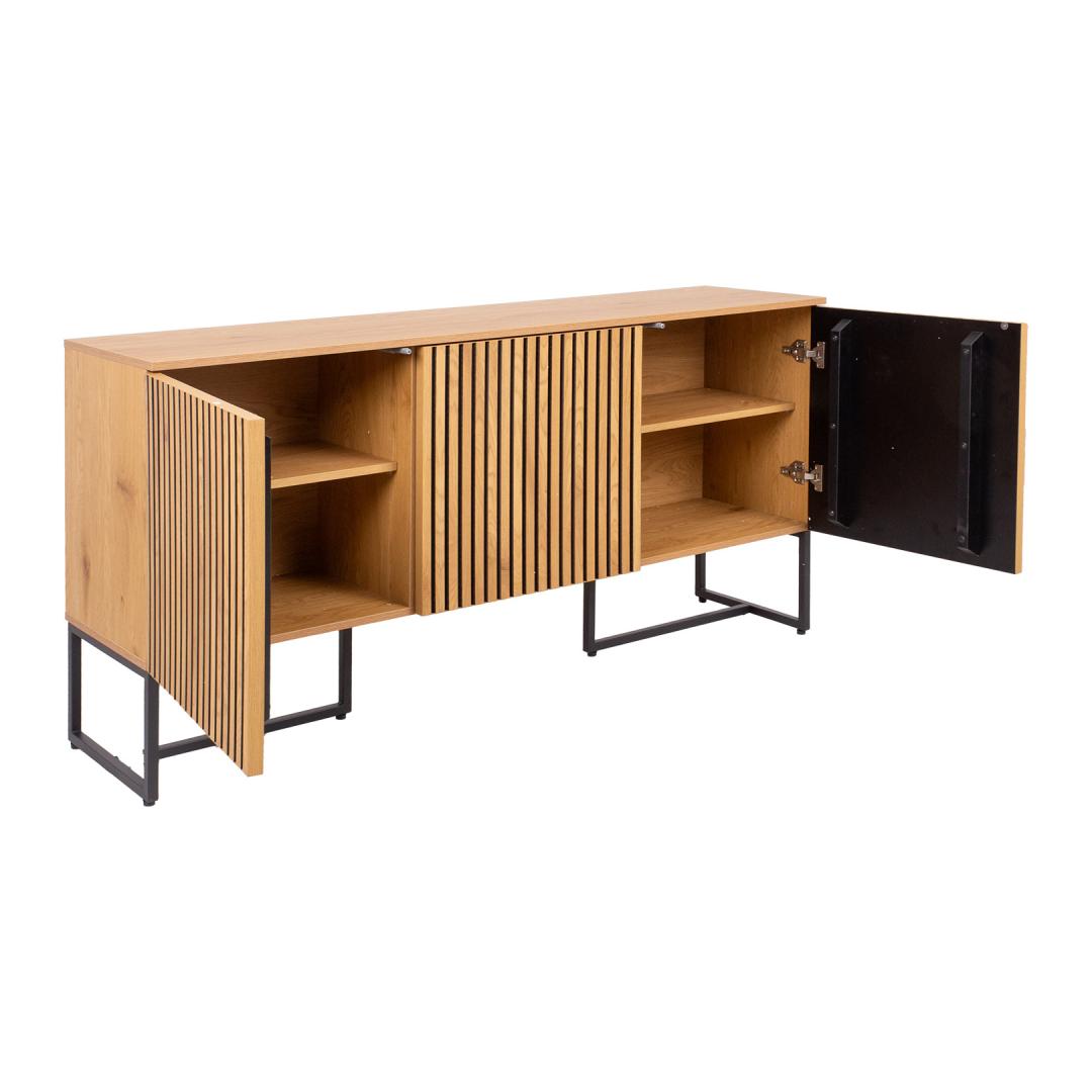Kummut HAMPTON 3-uksega 160x40xH80cm, tammedekooriga melamiin. Kummuti pealmine plaat ja korpus on valmistatud tammedekooriga melamiinplaadist. Uksepaneele kaunistavad kitsad tammevärvi MDF liistud mustal taustal. Kummuti metallist alusraam on viimistletud musta pulbervärviga. Kummut HAMPTON 3-uksega 160x40xH80cm, tammedekooriga melamiin. Kummuti pealmine plaat ja korpus on valmistatud tammedekooriga melamiinplaadist. Uksepaneele kaunistavad kitsad tammevärvi MDF liistud mustal taustal. Kummuti metallist alusraam on viimistletud musta pulbervärviga.