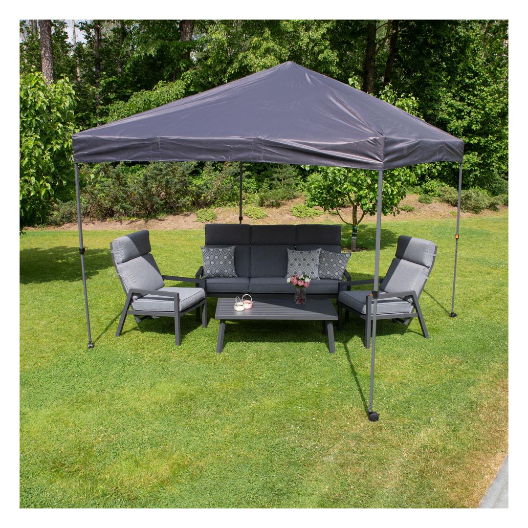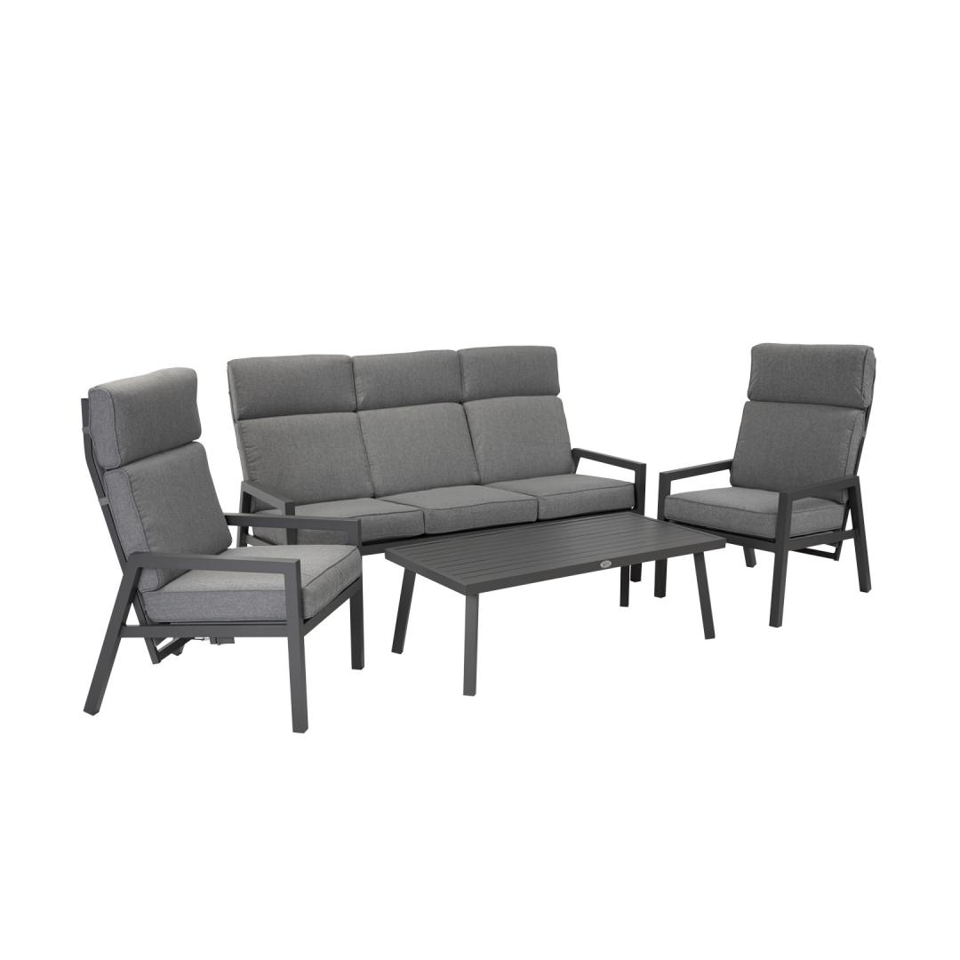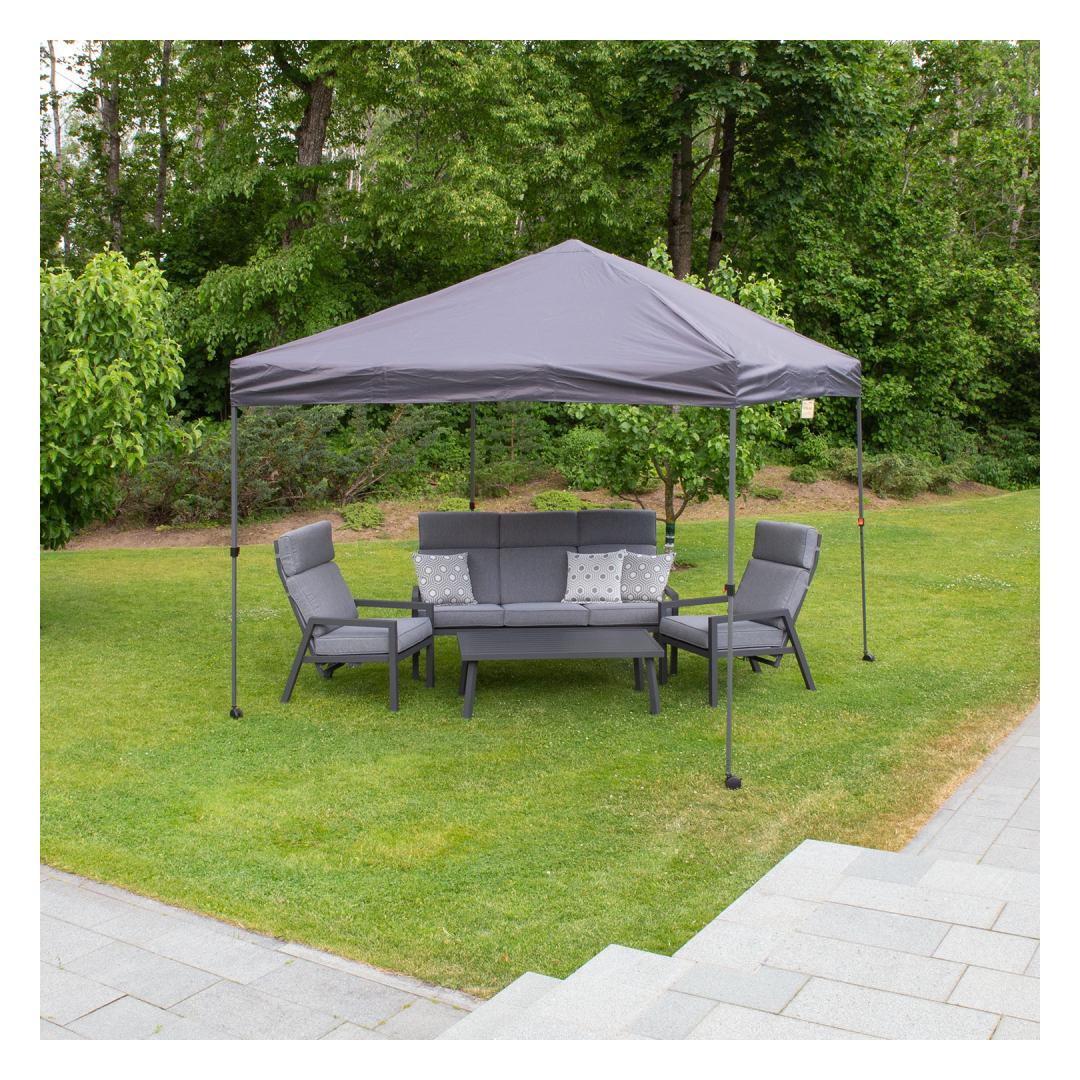 Garden furniture set CASPER table, sofa and 2 chairs. The main construction of all parts of the set and tabletop is made of aluminum and finished with a grey powder coating. Seats and backrests are made of textilene fabric, which is breathable, dries quickly, and is easy to clean. Soft seat cushions are included. The backrests of the armchairs are adjustable. The adjustment lever is located on the right-hand side, under the edge of the seat. Dimensions of the table are 120x58,5xH42cm, dimensions of the sofa and armchairs are 175,5x79xH104cm, 64x79xH104cm. Cushion covers are made of grey polyester fabric. Seat cushion thickness 10cm, back cushion thickness 8cm. The product is durable in changing weather conditions and very easy to maintain, only cushions need protection from the weather. A good solution to protect the cushions and keep them dry is to use a cushion box. To prolong the lifespan of outdoor furniture, we recommend the use of outdoor furniture covers. STORAGE: at the end of the summer season, we recommend storing the garden furniture indoors. Clean and dry the furniture before storing it. Use a dry, well-ventilated room for storage. Aiamööblikomplekt CASPER laud, diivan ja 2 tooli. Kõigi komplekti osade põhikonstruktsioon ja lauaplaat on valmistatud alumiiniumist ja viimistletud halli pulbervärviga. Textilene kangast istmed ja seljatoed lasevad hästi õhku läbi, kuivavad kiiresti ja neid on lihtne puhastada. Pehmed istmepadjad kuuluvad komplekti. Tugitoolide seljatoed on reguleeritavad. Reguleerimiskang asub paremal käel, istme ääre all. Laua mõõdud on 120x58,5xH42cm. Diivani mõõdud 175,5x79xH104cm. Tugitooli mõõdud 64x79xH104cm. Padjakatted on valmistatud hallist polüesterkangast. Istmepatjade paksus 10cm, seljatoepatjade paksus 8cm. Toode on muutlikes ilmastikutingimustes hästi vastupidav ja lihtsalt hooldatav. Kaitset ilmastikuolude eest vajavad ainult padjad. Hea lahendus patjade igapäevaseks hoiustamiseks ja kuivana hoidmiseks on padjakast. Välitingimustes kasutatava mööbli eluea pikendamiseks soovitame kasutada välimööbli katteid. HOIUSTAMINE: suvehooaja lõppedes soovitame aiamööblit hoiustada siseruumides. Puhastage ja kuivatage mööbel enne hoiule panekut. Kasutage hoiustamiseks kuiva ning hea ventilatsiooniga ruumi.