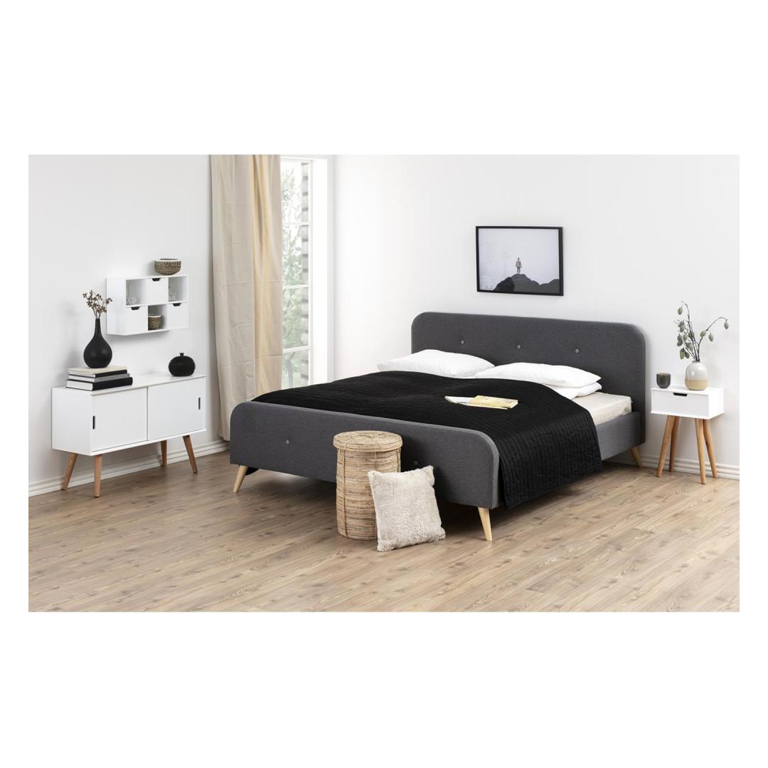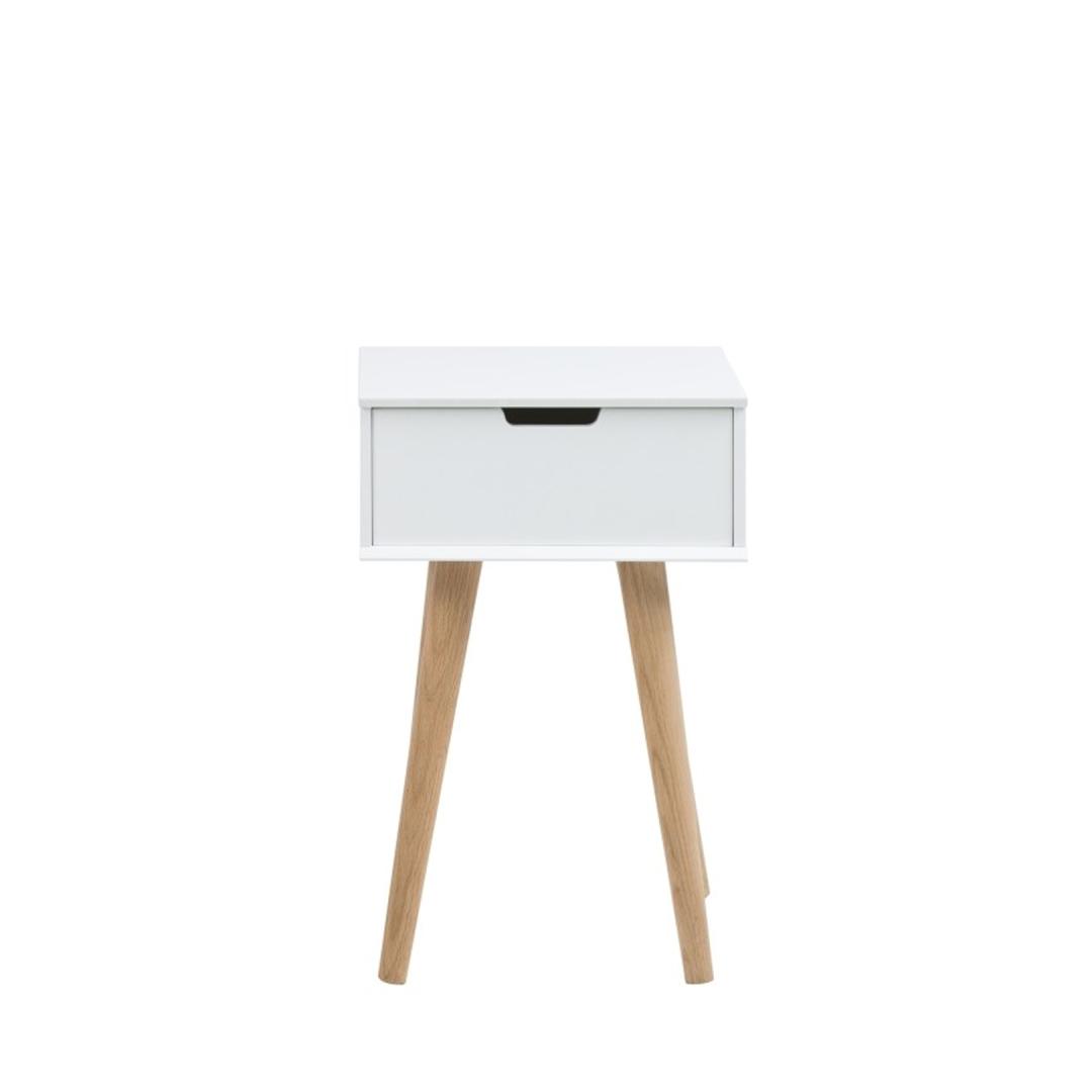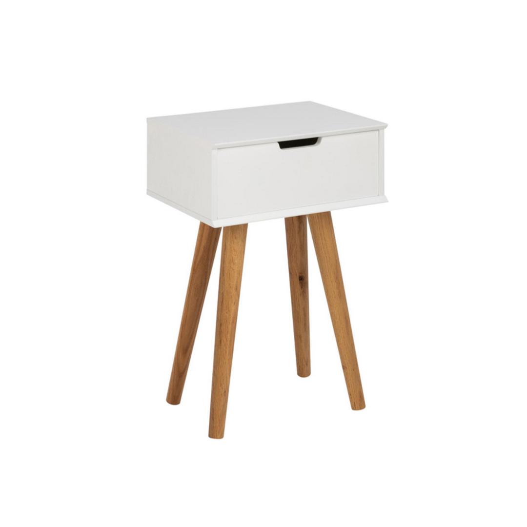 Mitra bed side table wood white, drawers 1 pcs, wooden legs oak L:40 W:30 H:61.5 cm. Öökapp MITRA 40x30xH61,5cm, sahtliga, materjal: puit, värvus: valge, jalad: tamm.