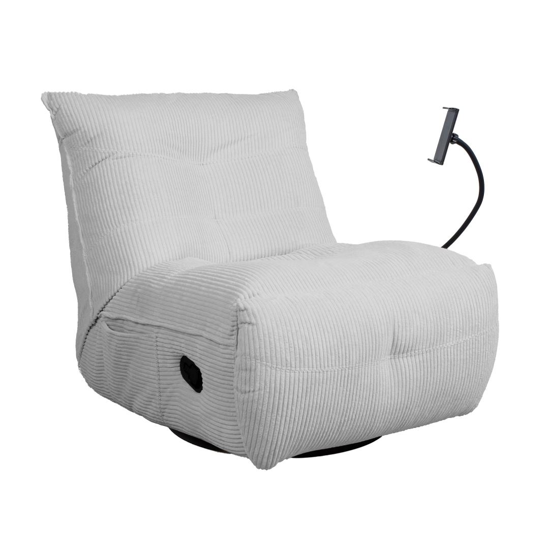 Recliner leisure chair WIN-WIN light grey. The perfect combination of comfort and functionality! The chair features a 360 ° swivel base and a glider mechanism. To elevate the footrest, pull the lever located on the right side of the chair upwards. By pressing the footrest down, it automatically locks into the initial position. When the footrest is raised, the backrest moves down under the influence of body weight. There is a flexible phone holder on the left side of the chair and a handy pocket on the right side. The frame of the chair is made of solid wood. Inside the seat, there is a pocket spring block. The seat and backrest are padded with polyurethane foam at 25-28kg/m³ density. The covering material is polyester fabric. The overall dimensions of the chair are 80x95xH90cm. Seat width 80cm, seat depth 60cm, seat height 49cm. Recliner puhketool WIN-WIN helehall. Täiuslik kombinatsiooni mugavusest ja funktsionaalsusest! Toolil on 360 ° pöörlev alus ja kiikemehhanism. Jalatoe tõstmiseks tõmmake tooli paremal välisküljel asuv kang üles. Surudes jalatuge alla fikseerub see automaatselt algasendisse. Kui jalatugi on üles tõstetud, liigub seljatugi alla keharaskuse mõjul. Tooli vasakul küljel on painduv telefonihoidja ja paremal küljel käepärane tasku. Tooli karkass on valmistatud täispuidust. Istme sees on pocket vedruplokk. Iste ja seljatugi on polsterdatud polüuretaanvahuga 25-28kg/m³. Kattematerjal on polüesterkangas. Tooli üldmõõdud on 80x95xH90cm. Istme laius 80cm, istme sügavus 60cm, istme kõrgus 49cm.