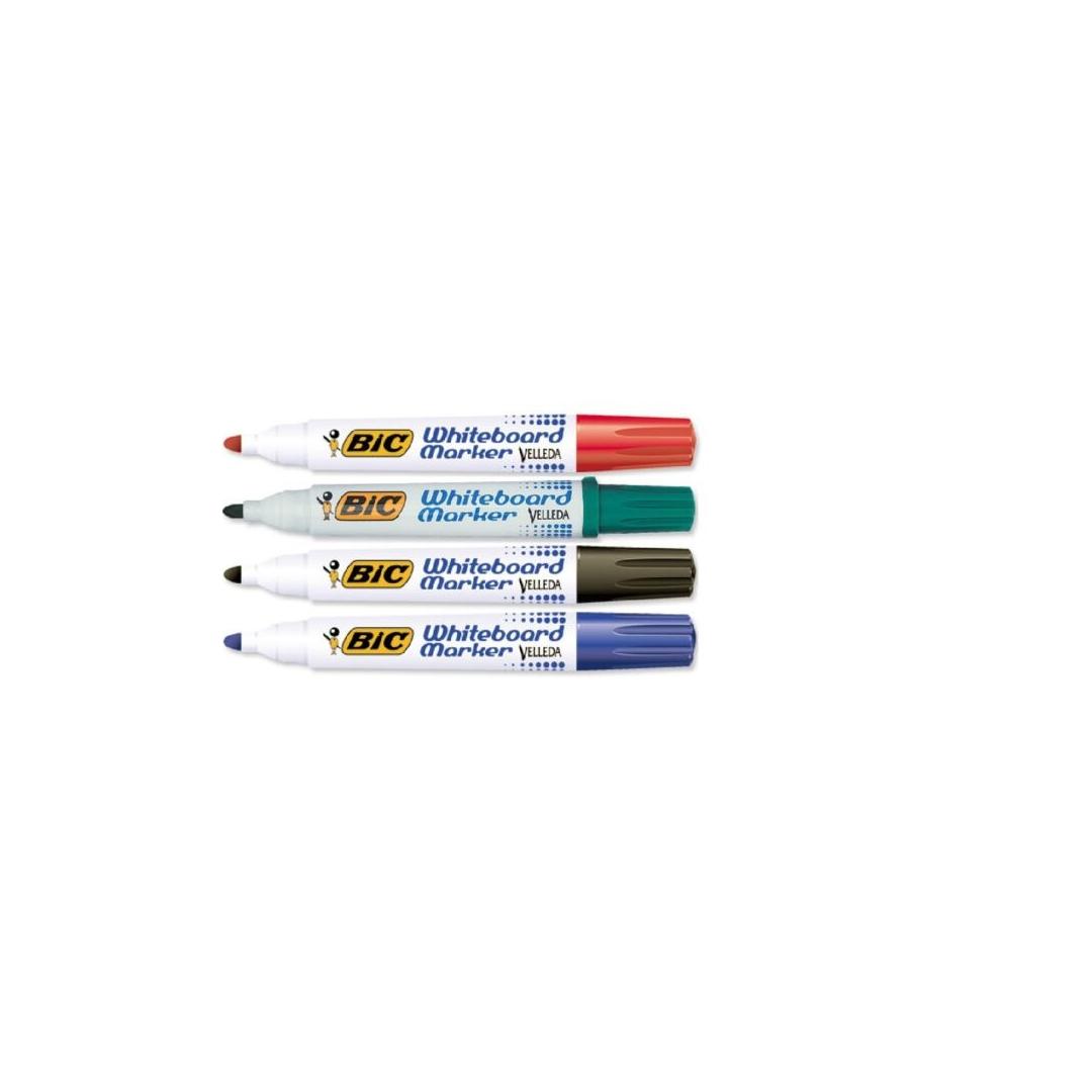 BIC Velleda Whiteboard Marker 1701. Kiekis pakuotėje: 4 vnt, Rašiklio spalvos: Juoda, Mėlyna, Žalia, Raudona, Antgalio tipas: Taškinis antgalis