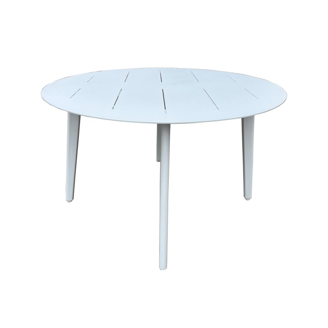 Table SAVO D120xH73cm, white. The tabletop and legs are made of aluminum and finished with a white powder coating. The product is durable in changing weather conditions and easy to maintain. STORAGE: at the end of the summer season, we recommend storing the garden furniture indoors. Clean and dry the furniture before storing it. Use a dry and well-ventilated room for storage. Laud SAVO D120xH73cm, valge. Lauaplaat ja jalad on valmistatud alumiiniumist ja viimistletud valge pulberärviga. Toode on muutlikes ilmastikutingimustes hästi vastupidav ja lihtsalt hooldatav. HOIUSTAMINE: suvehooaja lõppedes soovitame aiamööblit hoiustada siseruumides. Puhastage ja kuivatage mööbel enne hoiule panekut. Kasutage hoiustamiseks kuiva ning hea ventilatsiooniga ruumi.