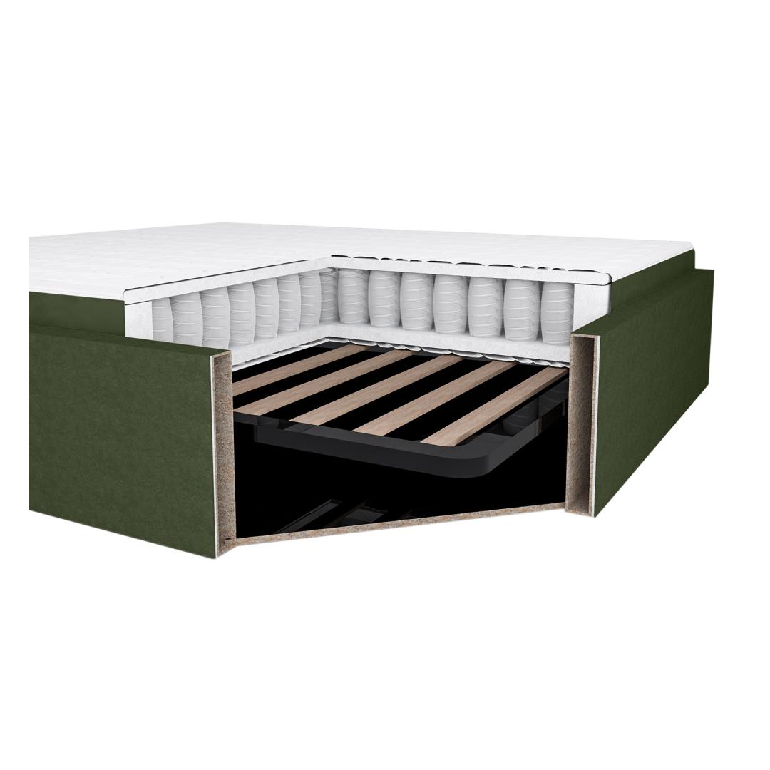 Continental bed LEENA 160x200cm, with mattress, green, 176x221xH110cm