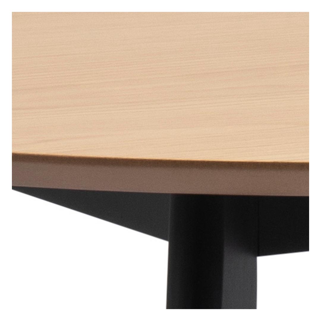 Dining table ROXBY, D105xH76cm, oak/black. Table top: veneered oak, lacquered, base: rubber wood, black painted. Söögilaud ROXBY D105xH76cm, tamm/must. Lauaplaat on kaetud naturaalse tammespooniga. Laud on viimistletud lakiga. Jalad on valmistatud kummipuust ning värvitud mustaks. Laua mõõdud on D105xH76cm.