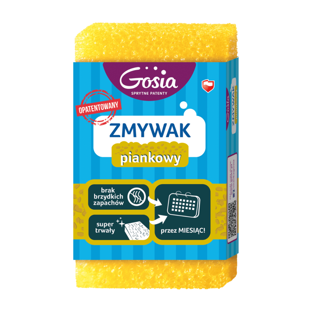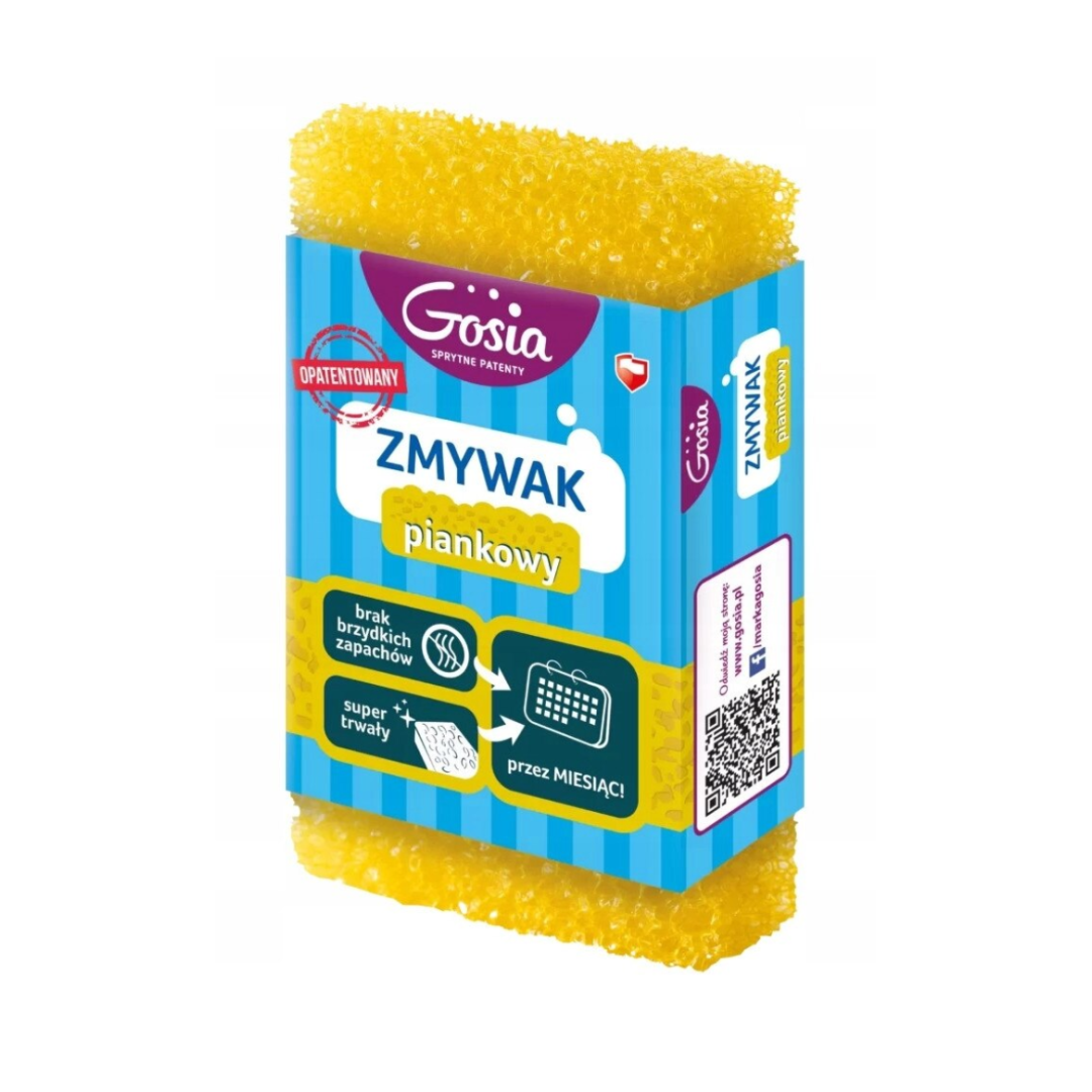 GOSIA Innovative dish sponge with foam/1 pc. No unpleasant smell and super durability for a month! Rinses out dirt residues exceptionally well - even grease. Safe to use on delicate surfaces. Dishwasher safe (up to 60°C) The product is not intended for contact with food.