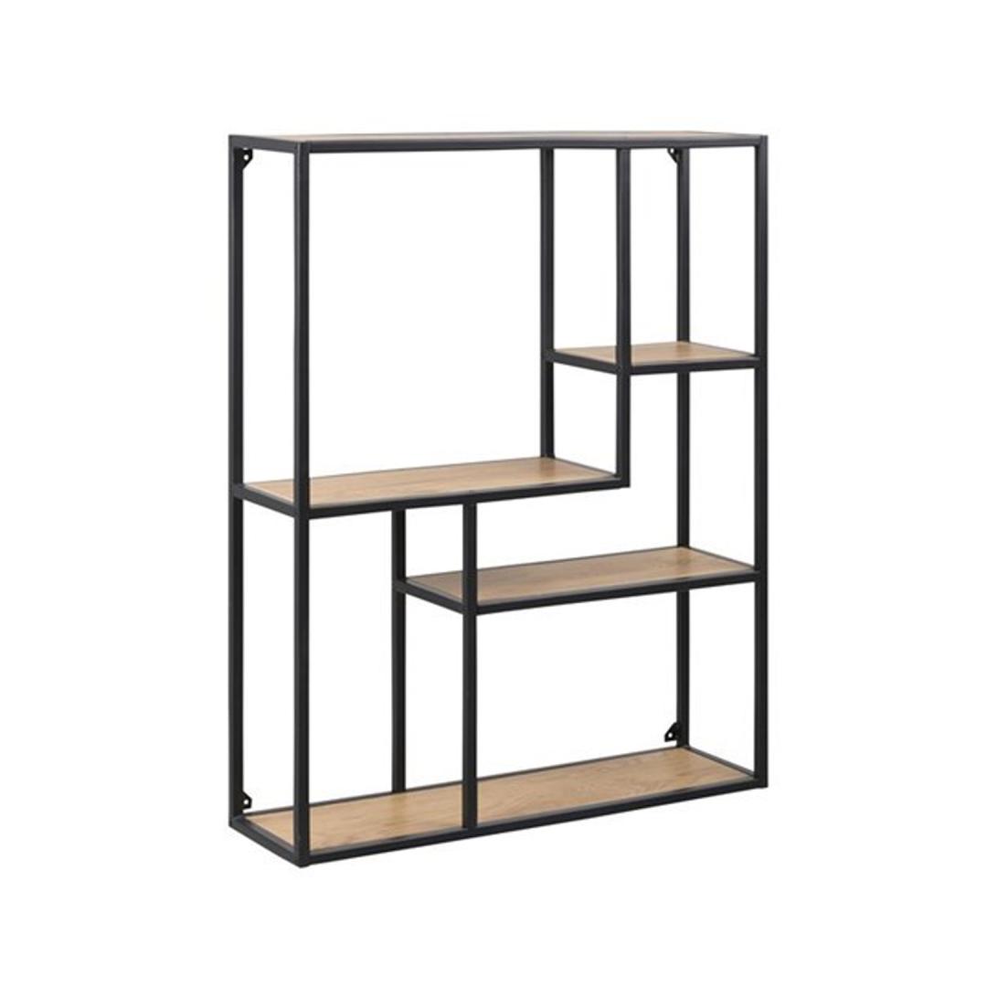 Wall shelf SEAFORD 75x20xH91cm, oak. The tasteful and practical shelf can be used in various rooms for convenient storage. The shelves are made of laminated particle board. The color is oak. The frame is made of black metal. The dimensions of the product are 75x20xH91cm. Seinariiul SEAFORD 75x20xH91cm, tamm. Maitsekat ja praktilist riiulit on võimalik kasutada erinevates ruumides asjade mugavaks hoiustamiseks. Riiulid on valmistatud lamineeritud kattega mööbliplaadist. Värvus on tamm. Raam on valmistatud musta värvi metallist. Toote mõõdud on 75x20xH91cm.