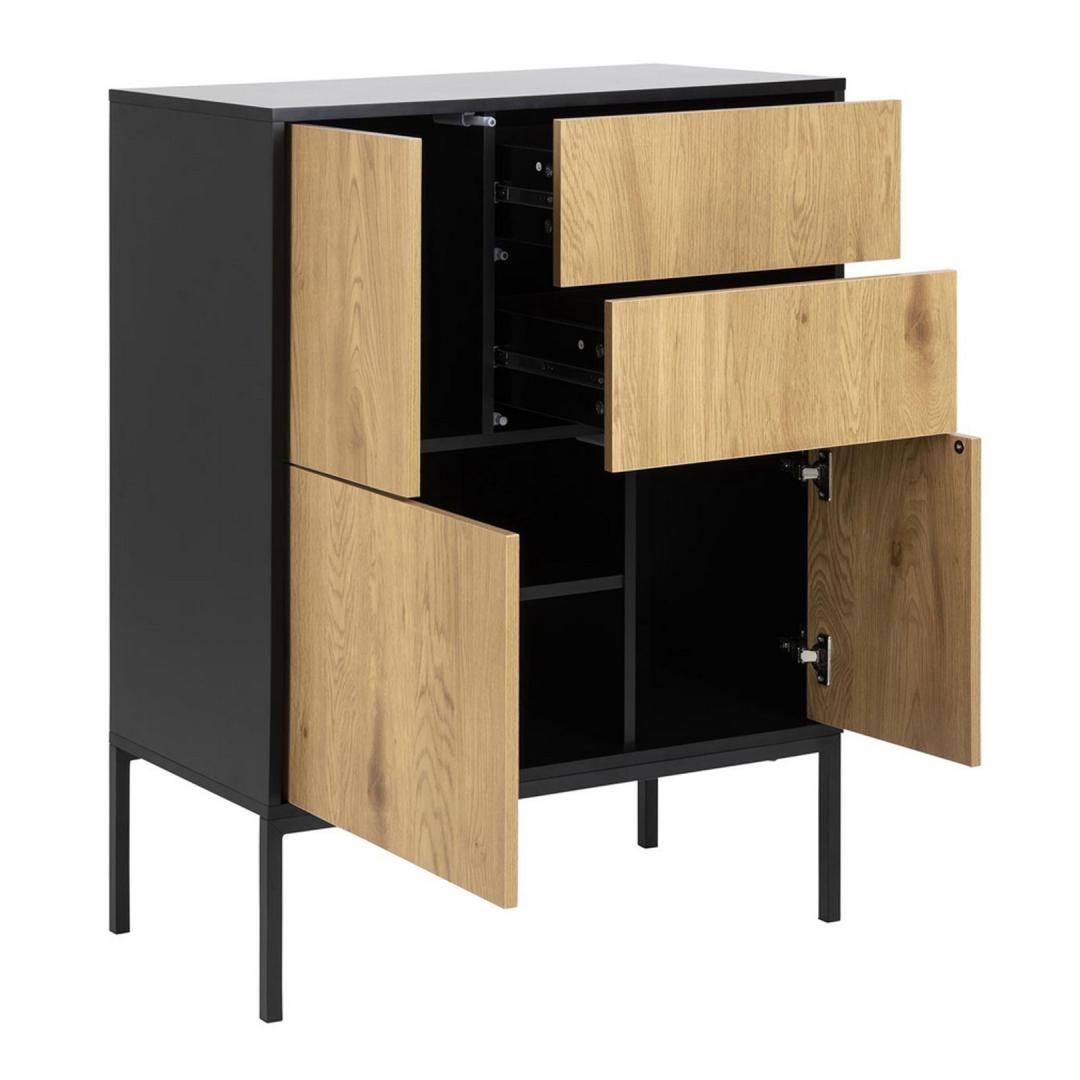 Chest of drawers SEAFORD 80x40xH103cm, 2 sahtliga, raam: MDF, lakitud must matt, 3 ust: lamineeritud kattega mööbliplaat
