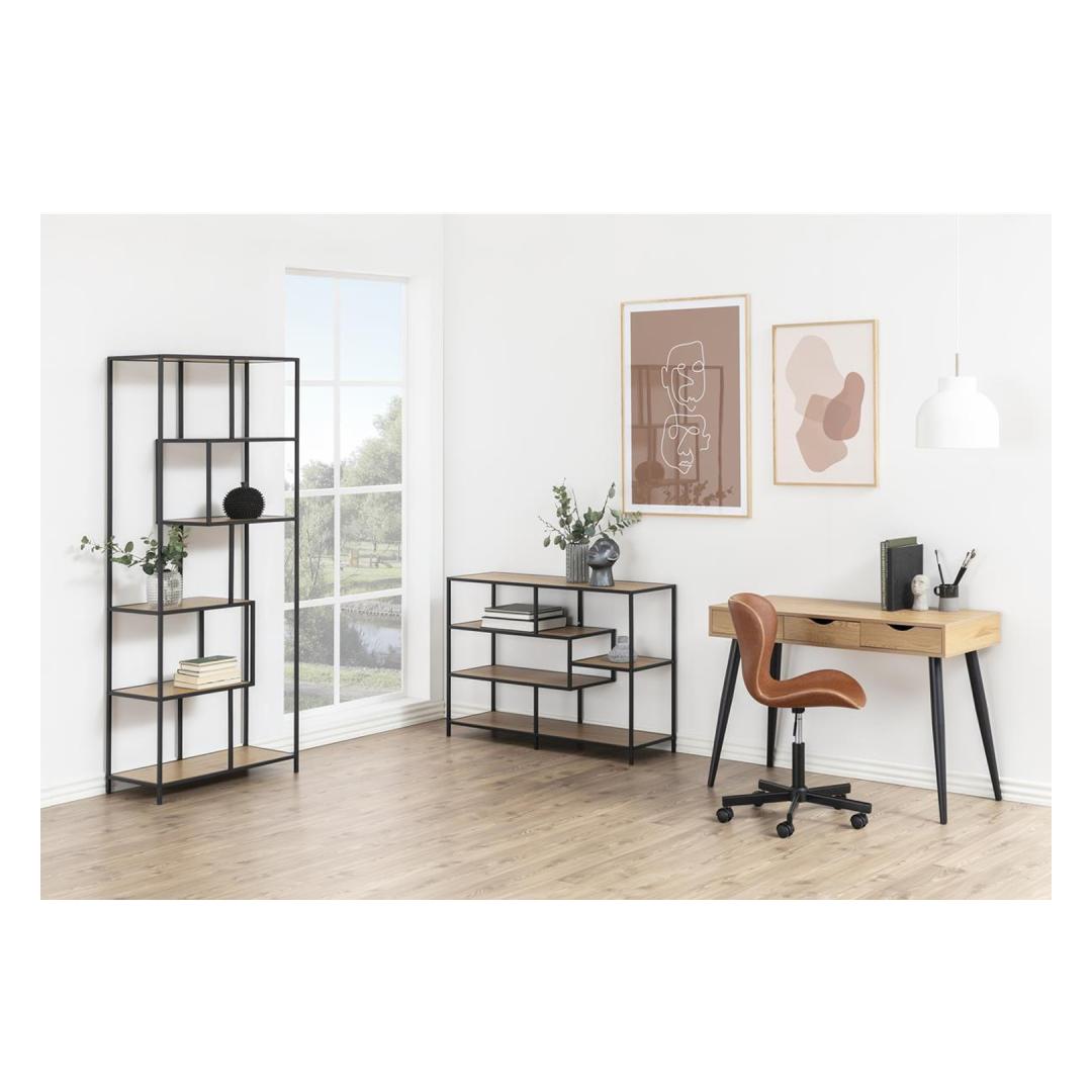 Riiul SEAFORD 77x35xH185cm, metsik tamm/must, mööbliplaat, metall