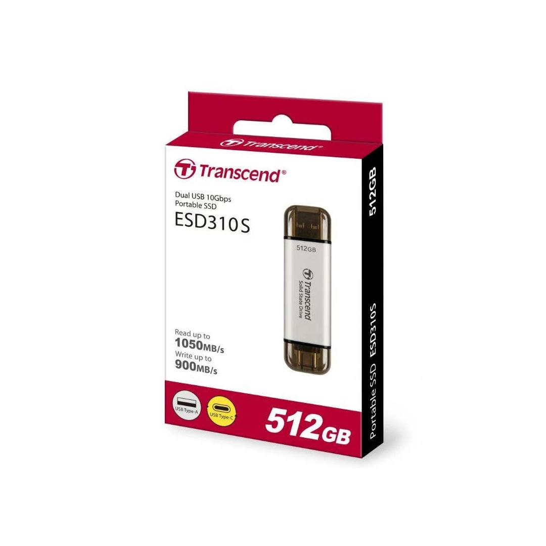 Colour Silver The ESD310 is Transcend's smallest portable SSD that delivers a lightning-fast transfer rate of 10 Gbps, allowing you to transfer vast amounts of files in the blink of an eye. With the inclusion of both USB Type-A and Type-C connectors in a single drive, the ESD310 is a convenient and efficient external storage option that you won't want to miss out on!