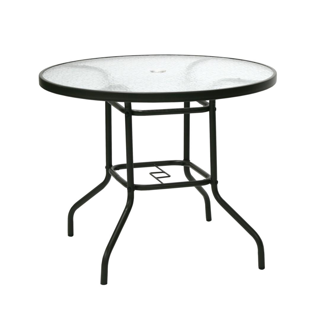 Laua mõõdud on D90xH71cm. Lauaplaat: 5mm läbipaistev laineline klaas.