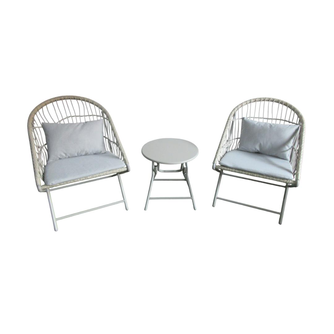Foldable balcony set YOLANDA 2 chairs and table, light gray.