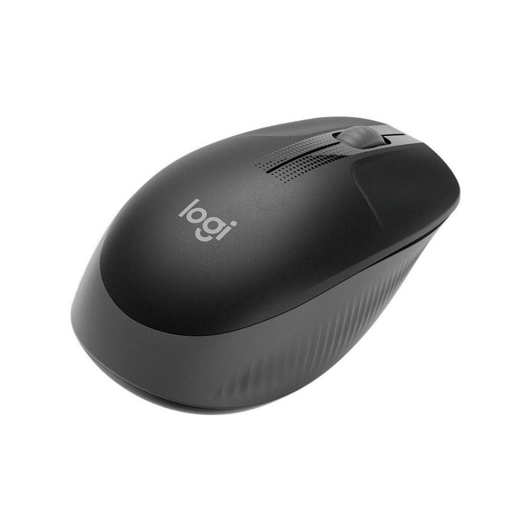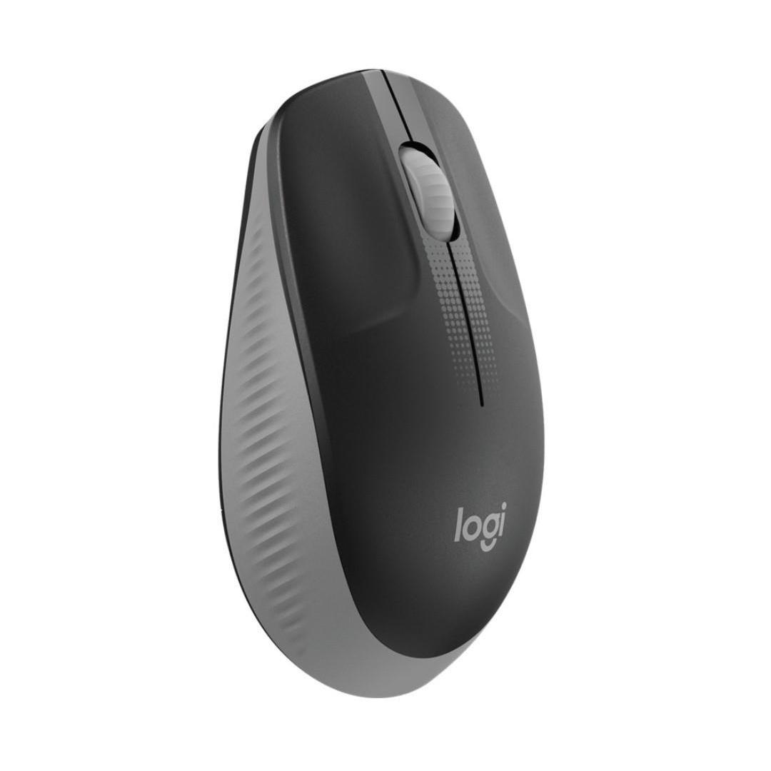 Logitech M190 is a full-size wireless mouse with a comfortable contoured design that follows the natural curve of medium to large hands.