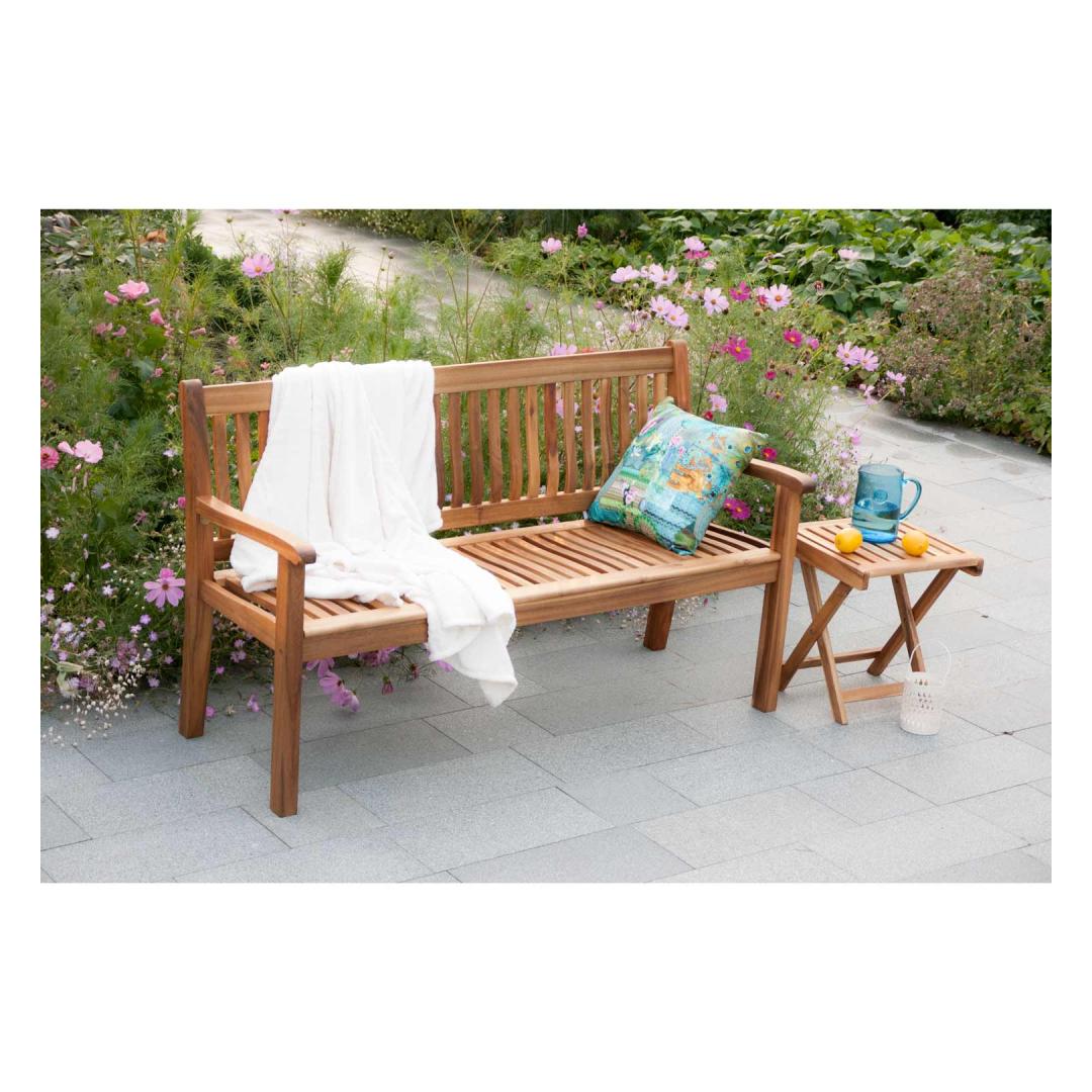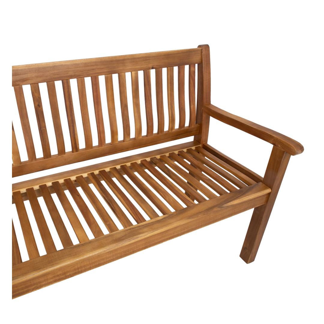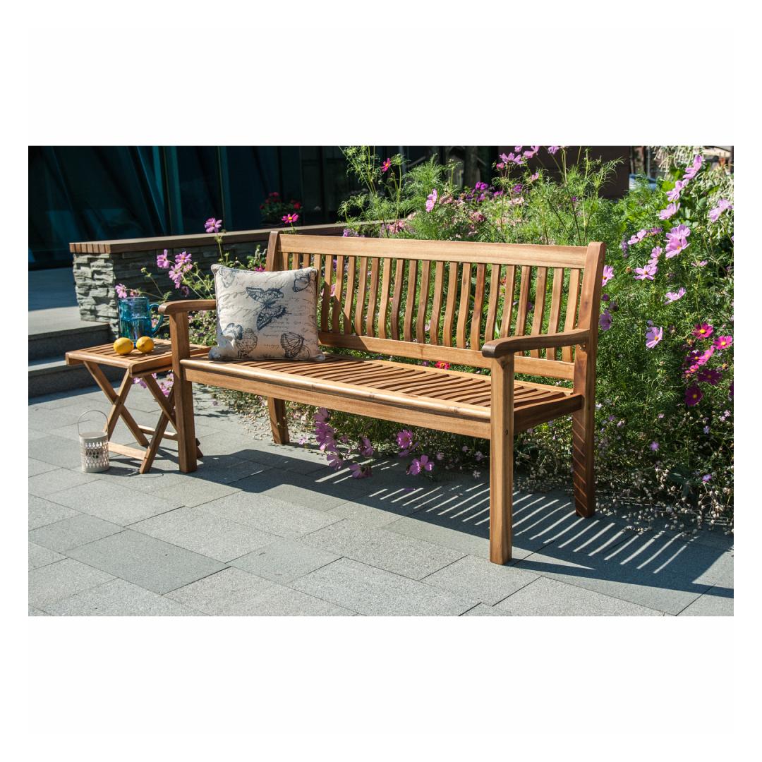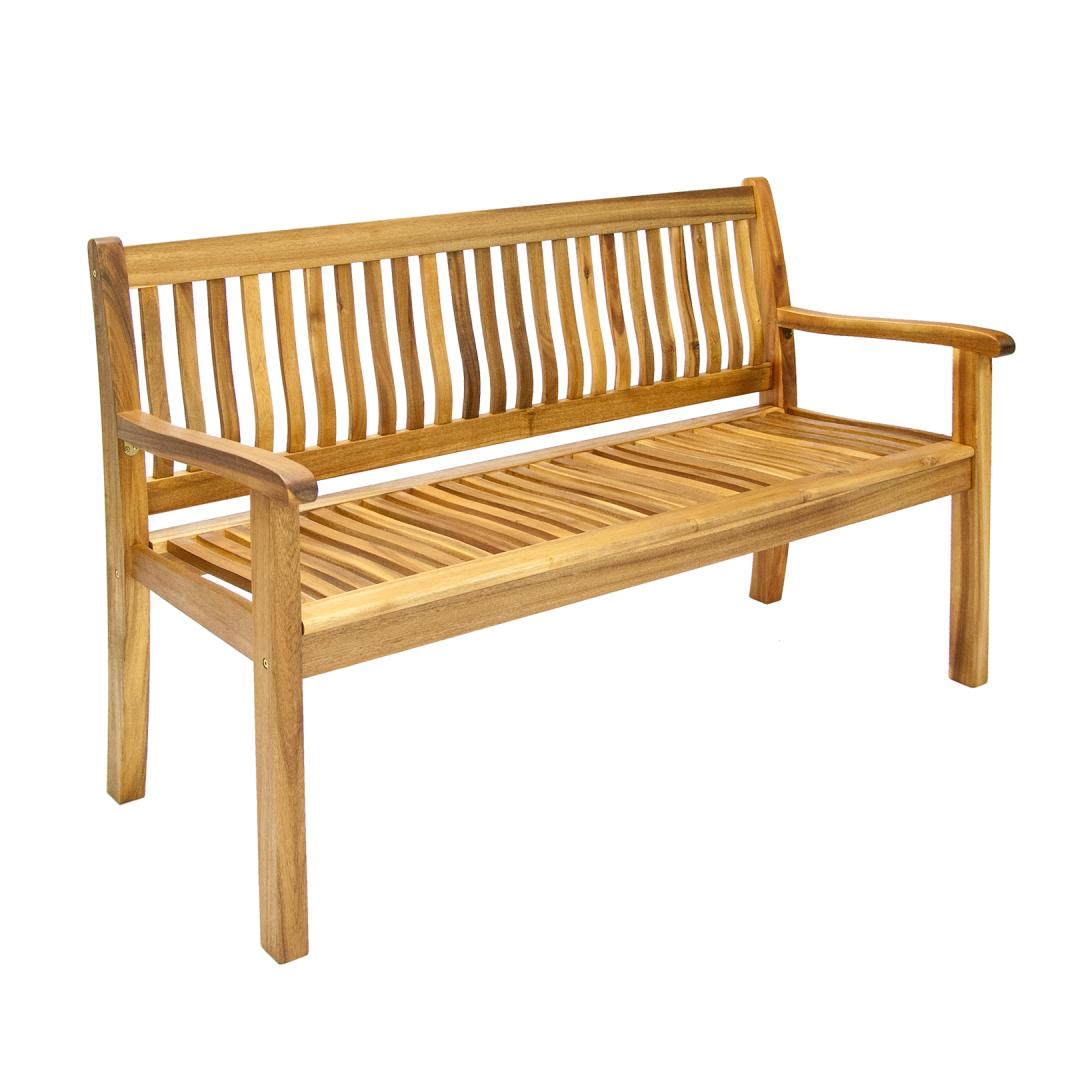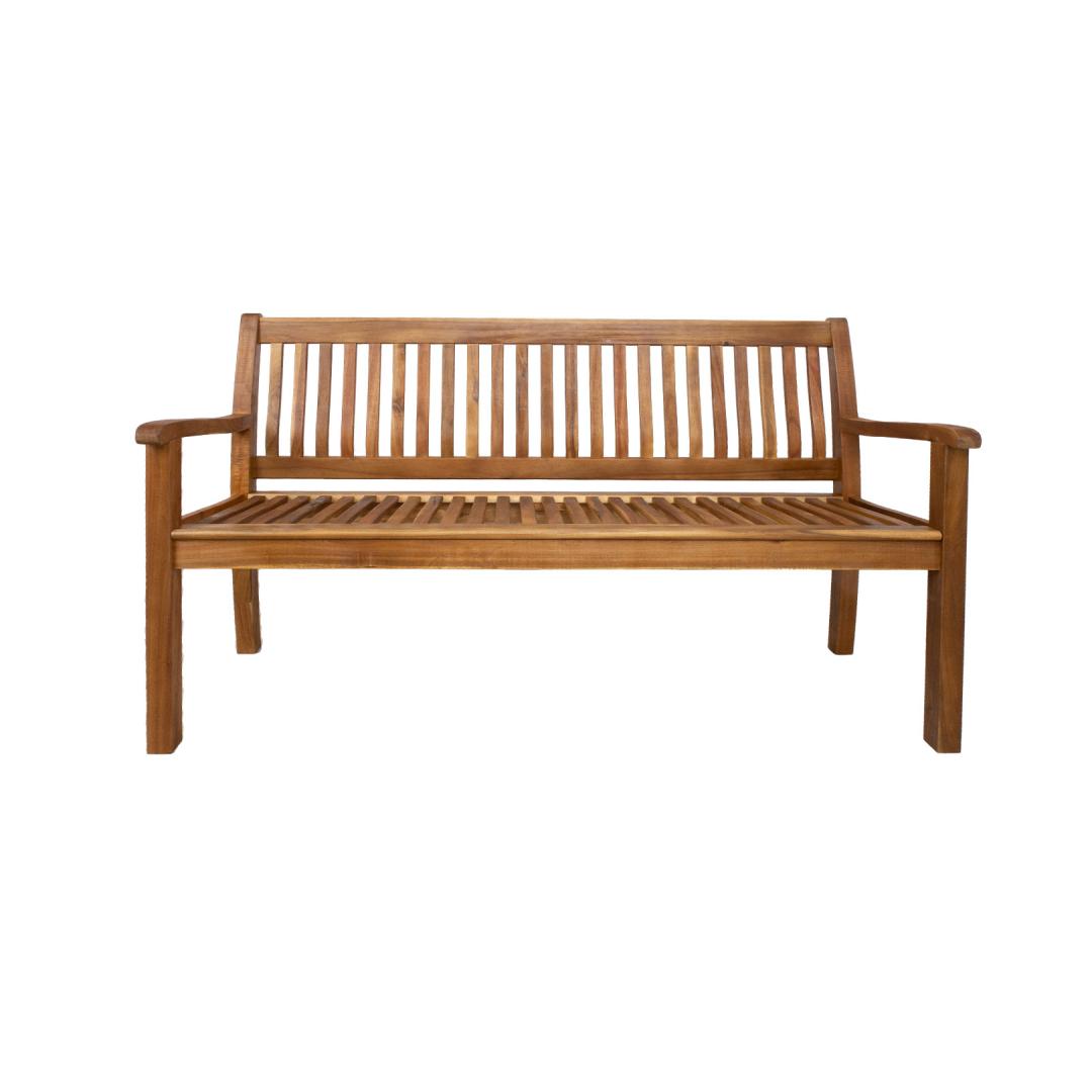 FINLAY bench, acacia. A bench is a comfortable and space-saving solution for a smaller terrace or garden. The bench is made of acacia wood and finished with wood protection oil. The overall dimensions of the bench are 150x61xH89cm, seat width 140cm, seat depth 50cm, seat height 45cm, backrest height 46.5cm. The height of the armrest from the ground is 66 cm. Weight limit 160 kg. The product is durable in changing weather conditions. MAINTENANCE: wood is a living natural material, the appearance of which changes due to weather conditions. Clean the furniture regularly, protect it from excess moisture and UV radiation. Light sanding and a new coat of oil at least once a year is enough to refresh the furniture to give it a new look. STORAGE: At the end of the summer season, we recommend storing the garden furniture indoors. Clean and dry the furniture before storing. Use a dry and well-ventilated room for storage. Protect the furniture from direct sunlight during storage.