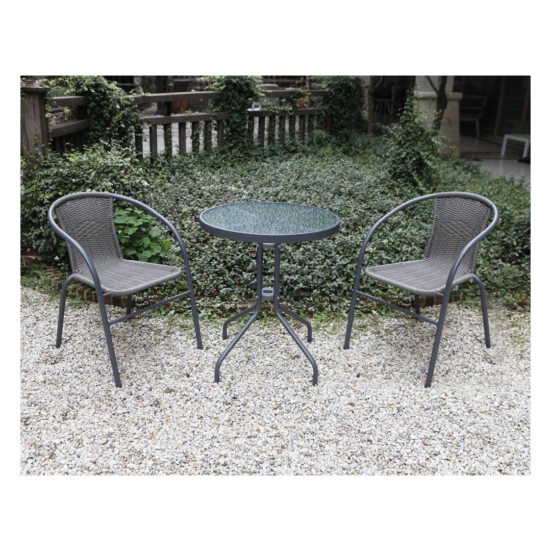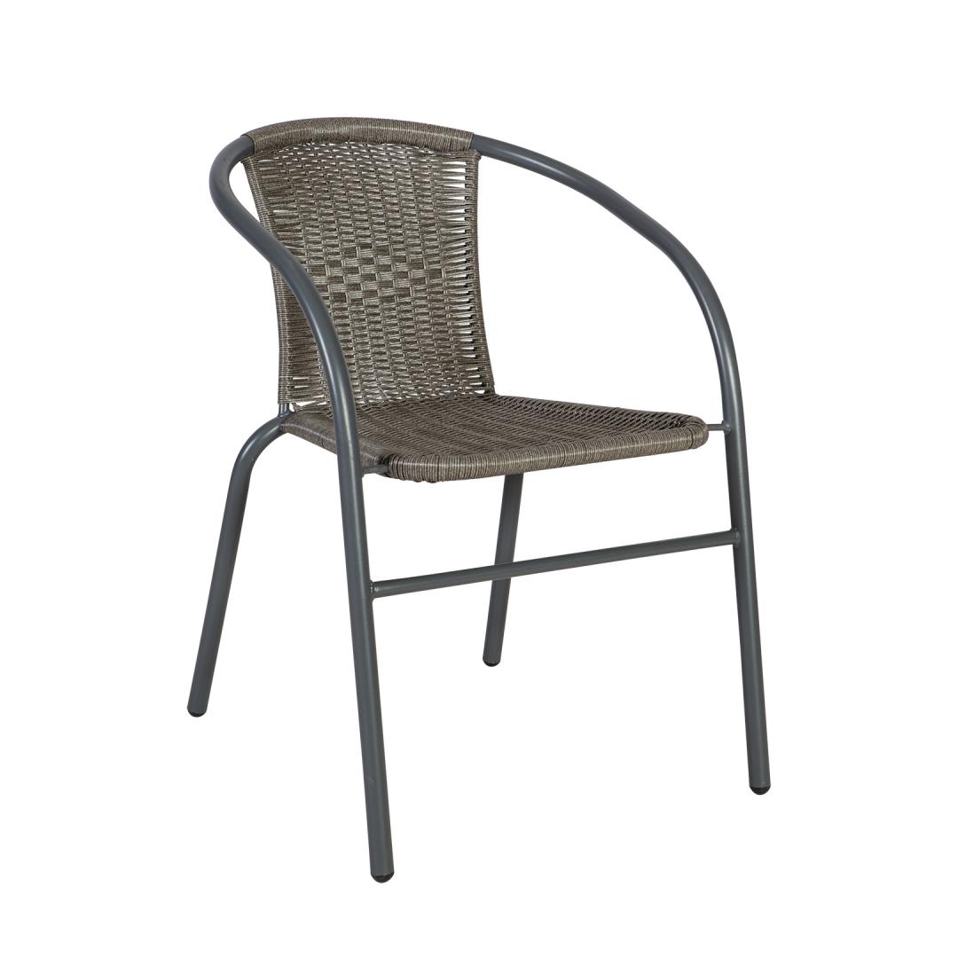Chair BISTRO gray. By placing garden chairs on the balcony, terrace or garden, you can create a cozy seating area where you can enjoy the beautiful weather during the day or spend cozy evenings. By combining the products you like, you can create a set that suits you. The steel frame of the chair is covered by a gray plastic braid. The braid color code is LR-WF-1333. The chair is stackable, which makes it easier to store. The product is durable in changing weather conditions. The weight limit of the chair is 100 kg and the dimensions are 52x58xH73cm.