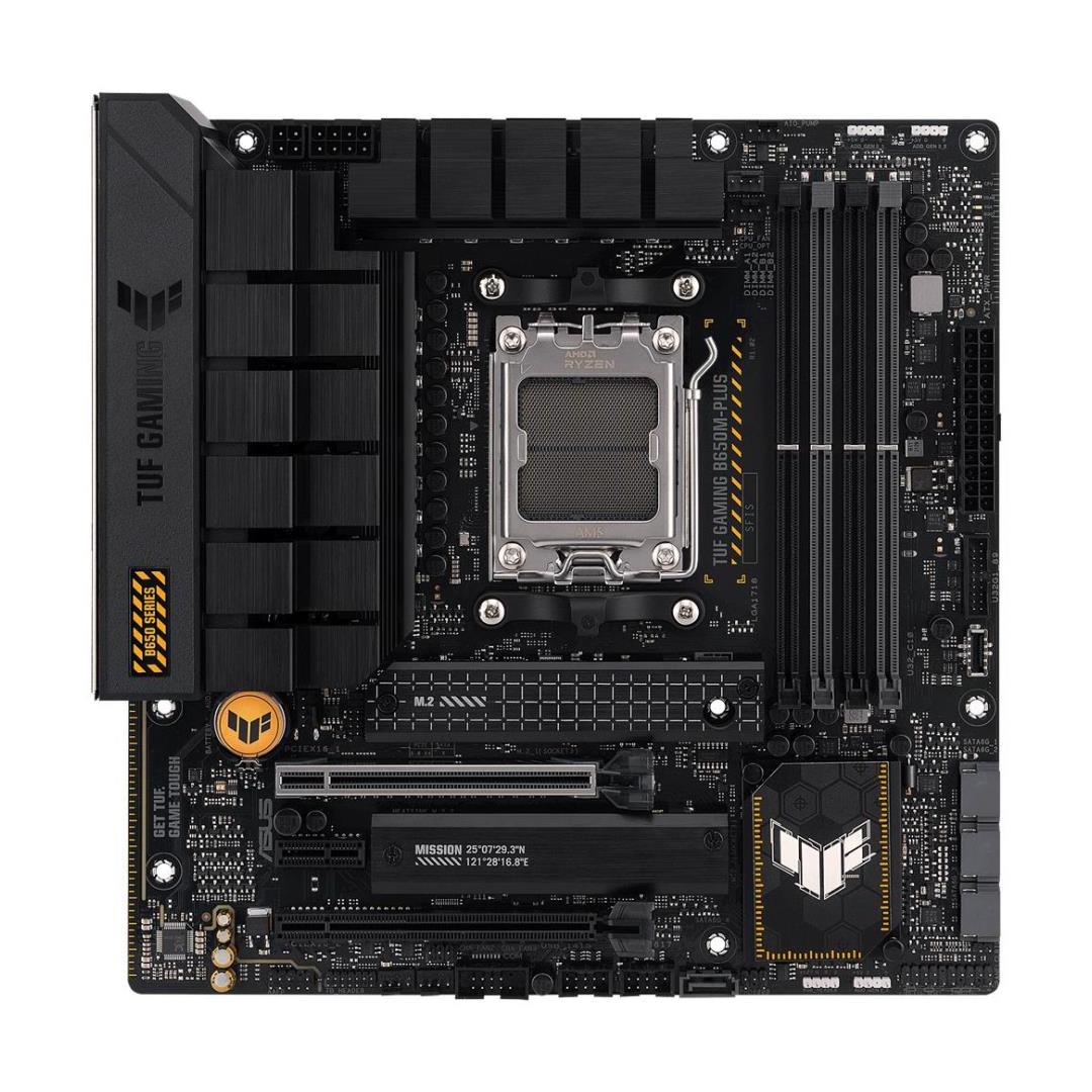 ASUS TUF GAMING B650M-PLUS takes all the essential elements of the latest AMD Ryzen 7000-series processors and combines them with game-ready features and proven durability. Engineered with military-grade components, an upgraded power solution and a comprehensive cooling system, this motherboard goes beyond expectations with rock-solid and stable performance for marathon gaming. TUF GAMING motherboards also undergo rigorous endurance testing to ensure that they can handle conditions where others may fail. Aesthetically, this model incorporates rugged off-black and geometric design elements to reflect the dependability and stability that defines the TUF GAMING series.