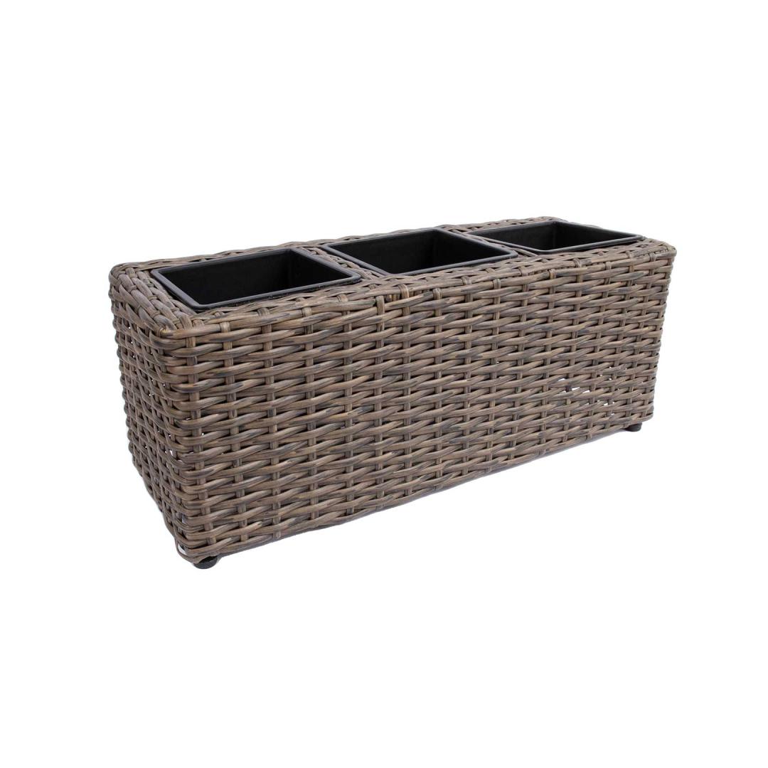 The set includes 3 inner pots. Lillekast WICKER 48x18xH18cm, tumepruun.