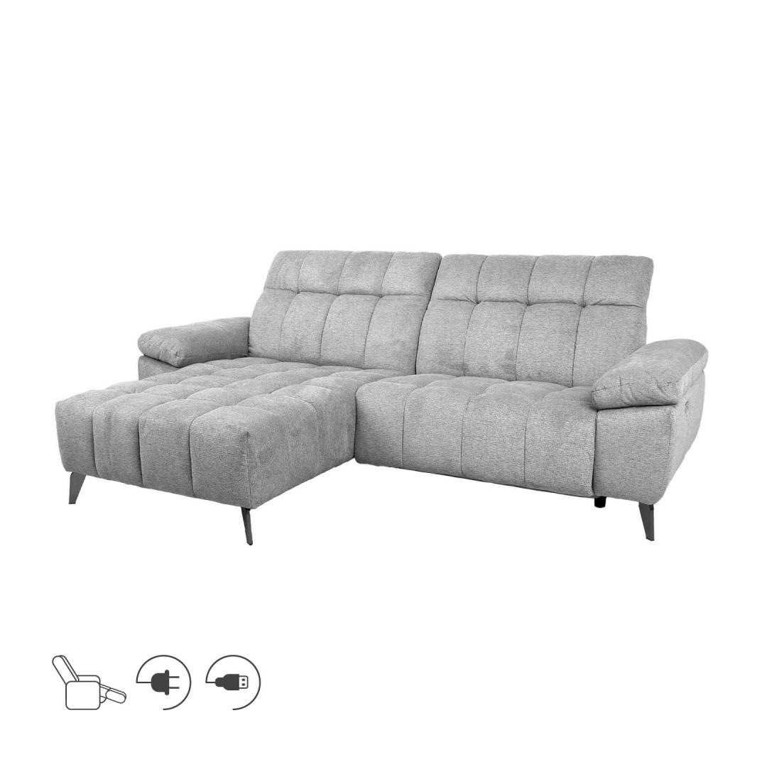 Corner sofa LUZERN left corner, electric recliner, light grey.