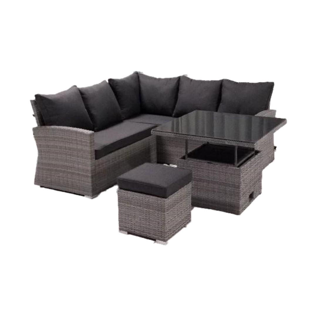 Garden furniture set SAMUEL height-adjustable table, corner sofa and ottoman.