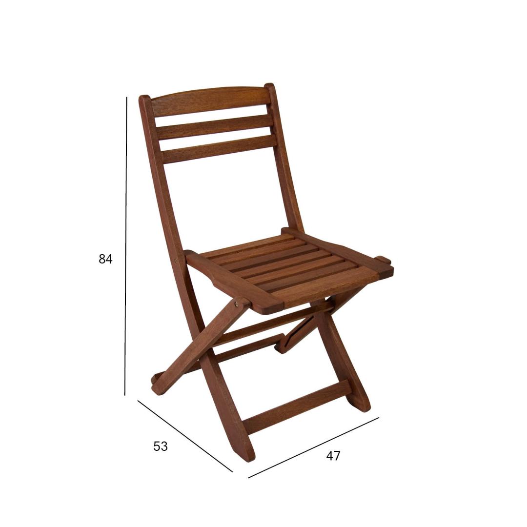 The classic solid wood folding garden chair is a comfortable and practical choice for the garden or terrace. The chair is made of meranti wood. Meranti, like most tropical woods, has a very high oil content, which ensures the wood's resistance to weather conditions. The surface of the wood is finished with wood preservative oil with a small amount of natural brown pigment to stabilize the variations in the color of the wood grain.
