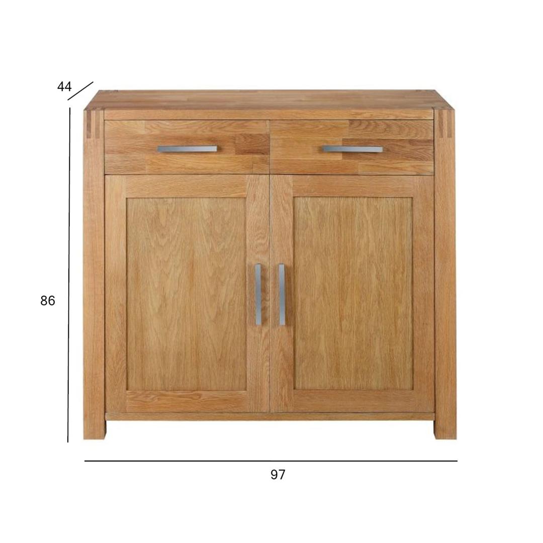Sideboard CHICAGO NEW with 2-doors and 2-drawers, 97x44xH86cm. Top panel: MDF+FingerJoint oak Veneer; single tenon. Leg: hard wood+veneer; shelf: PB, oak veneer; handle: aluminum. Kummut CHICAGO NEW, 97x44xH86cm, tamm. Karkass naturaalse tamme spooniga, pealmine tasapind 19mm naturaalse tamme spooniga, sahtlite esipaneelid naturaalsest tammespoonist. Vaheriiulid on tammespooniga kaetud vineer. Alumiinium käepidemed.