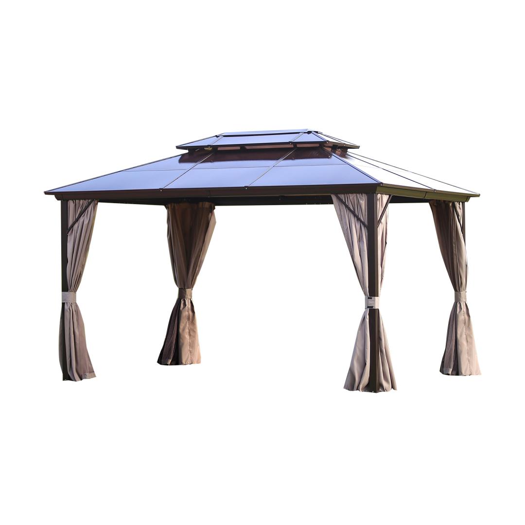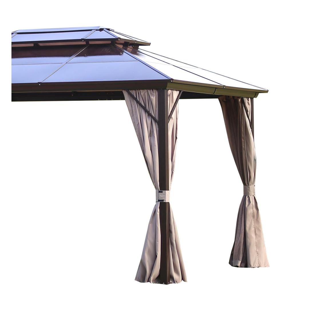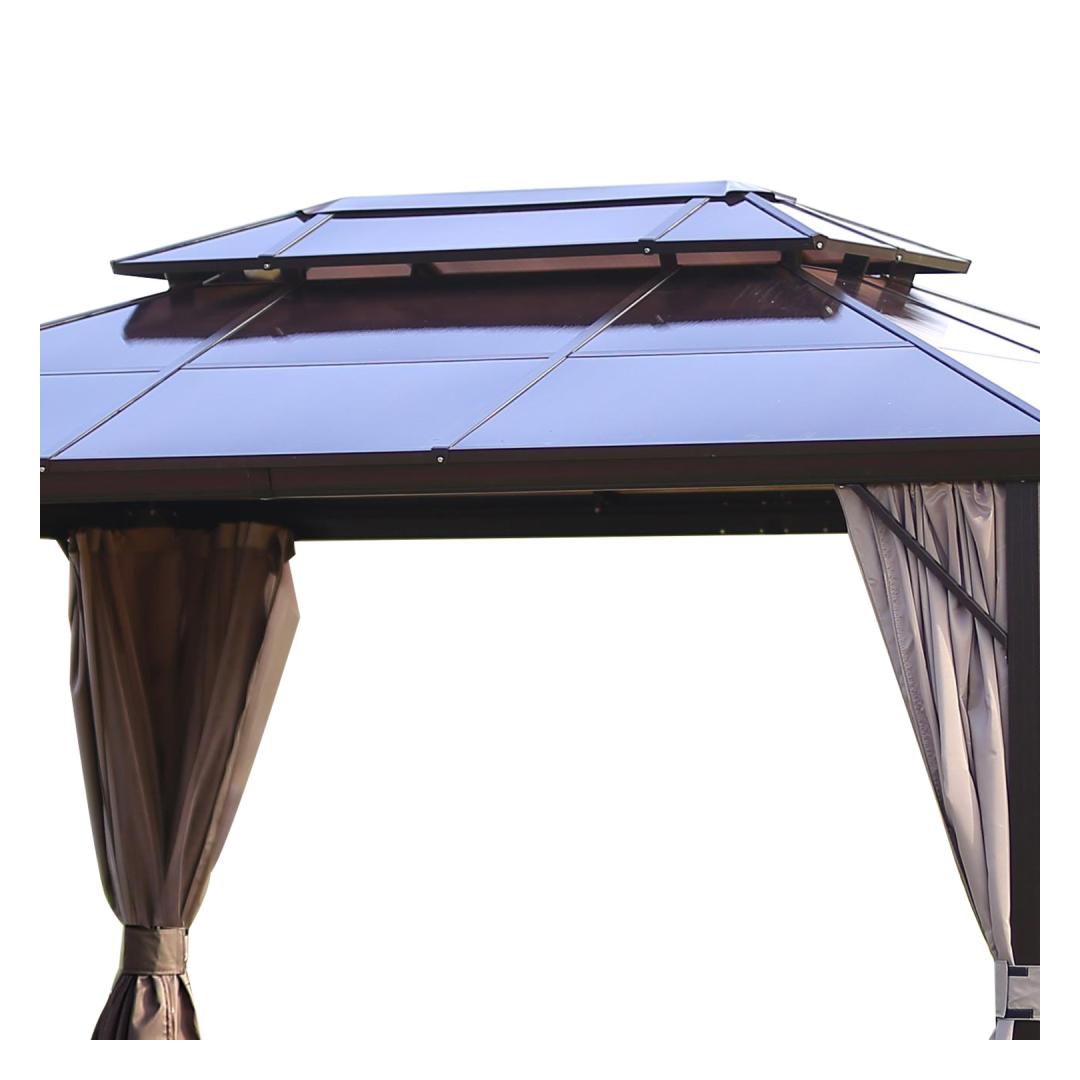The main construction of the gazebo is made of aluminum. All frame parts are finished with a brown powder coating.