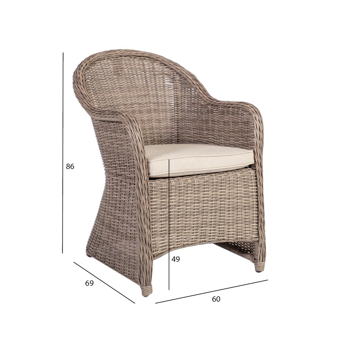 The overall dimensions of the chair are 60x69xH86cm. The dimensions of the seat cushion are 46x51xH7cm. The height of the seat to the edge of the frame is 42cm. The height of the armrest from the ground is 66cm.
