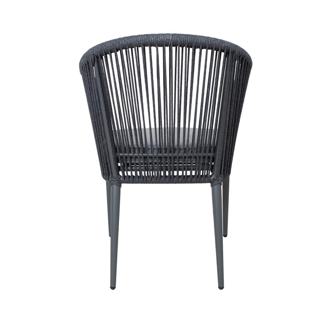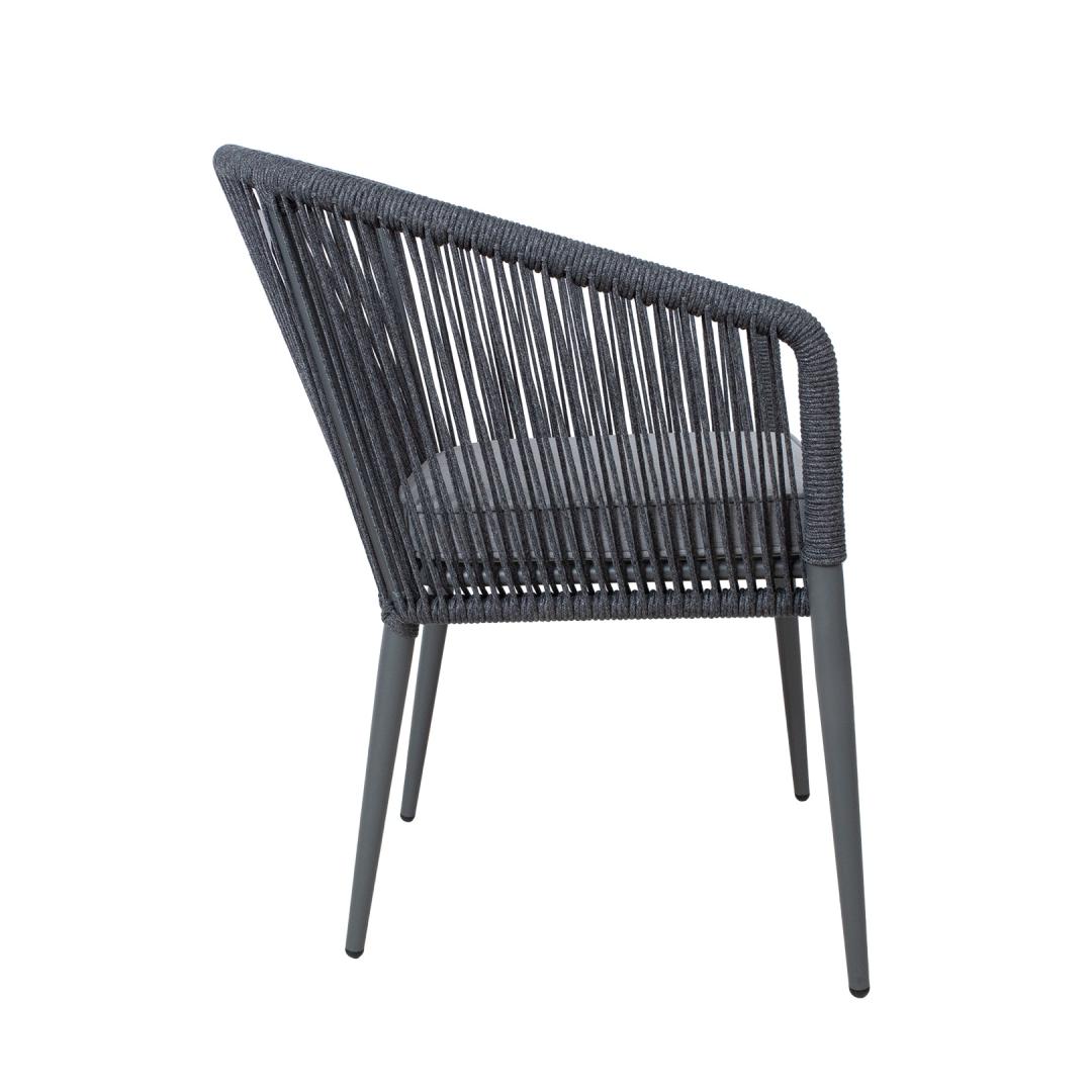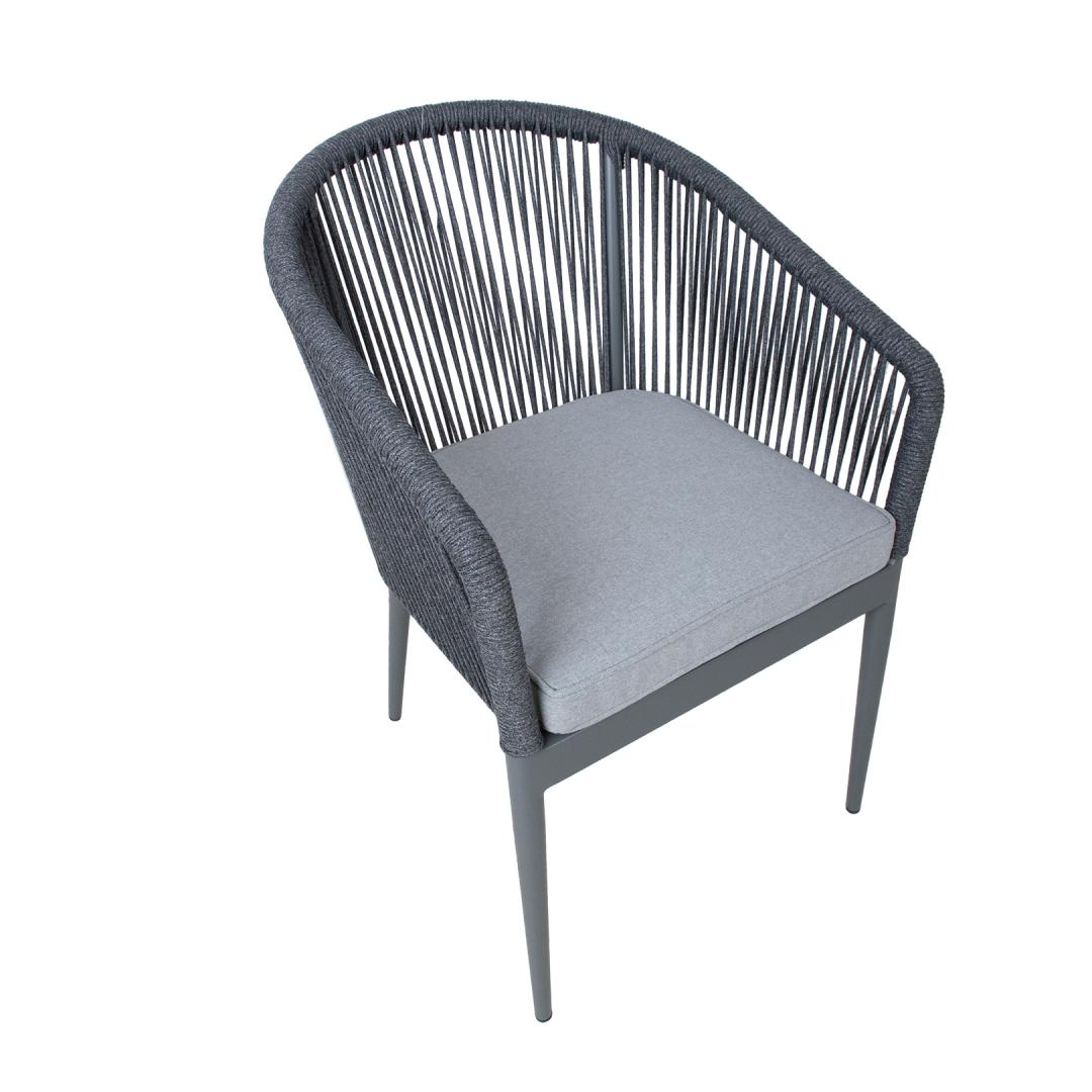 The frame and legs of the chair are made of aluminum and finished with a grey powder coating.