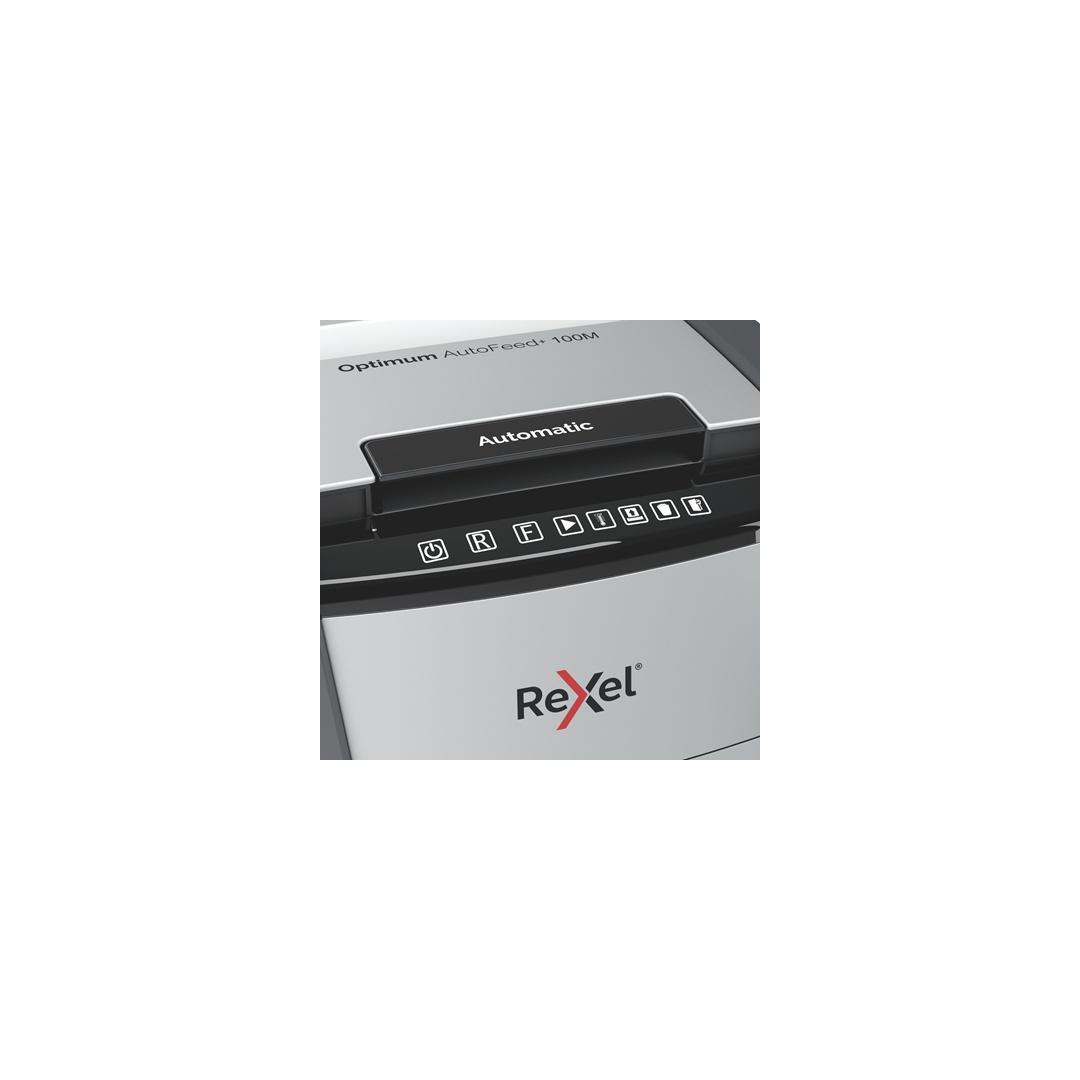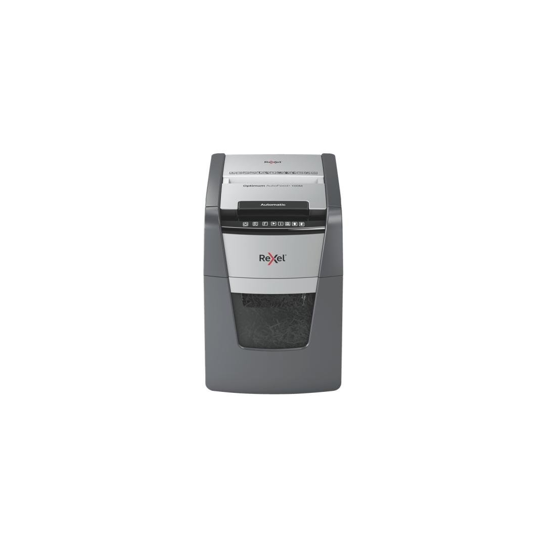 Rexel Optimum AutoFeed+ 100M Paper Shredder, Micro-cut shredding 2x15mm P-5 34L 55dB, Grey/Black