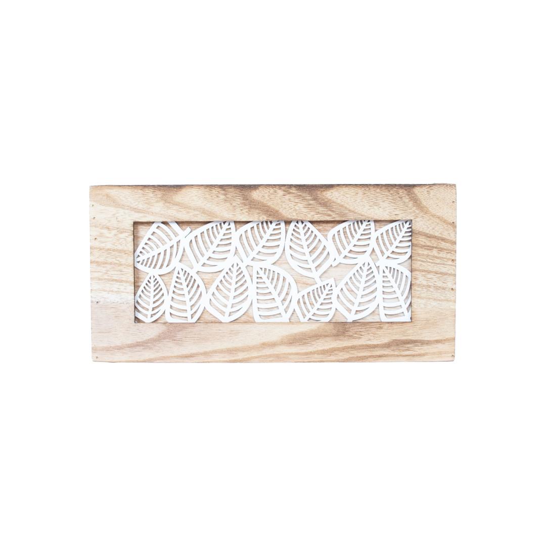 Üks küljepaneel on kaunistatud valgete lehemotiividega.