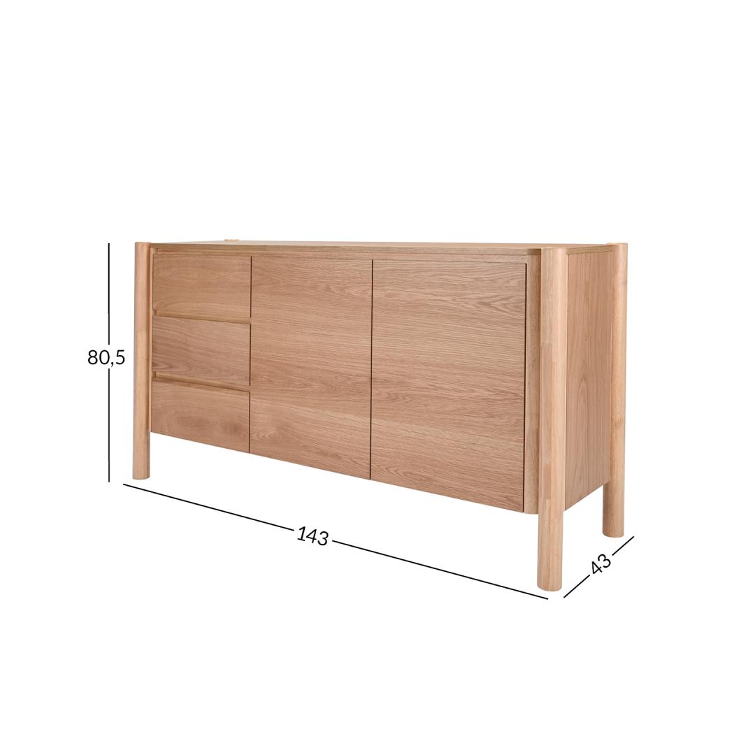 Side board GARDENIA with 3 drawers and 2 doors 143x43xH80,5cm, oak.