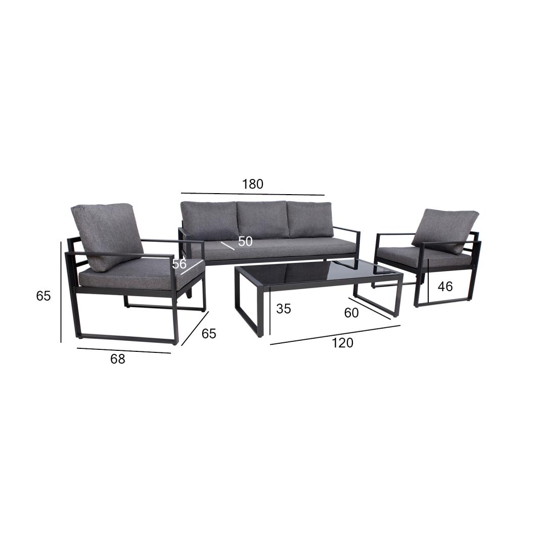 Laua mõõdud on 60x120xH35cm, lauaplaat: 5mm tumehall karastatud klaas.