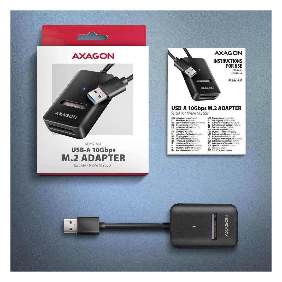SSD ACC ADAPTER USB3.2/M.2/10GBPS 0.1M ADM2-AM AXAGON